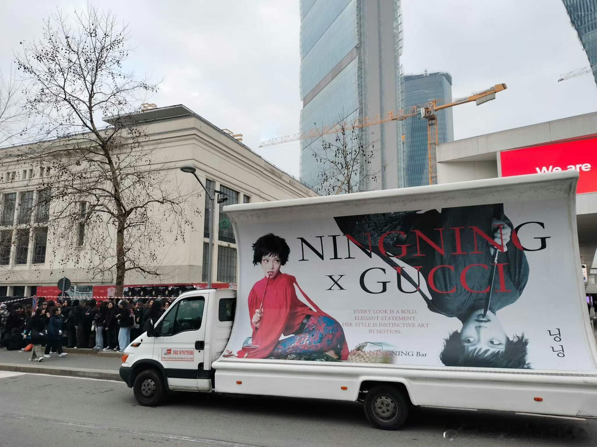 海报车已就位,等待Gucci女王宁艺卓21点出场
