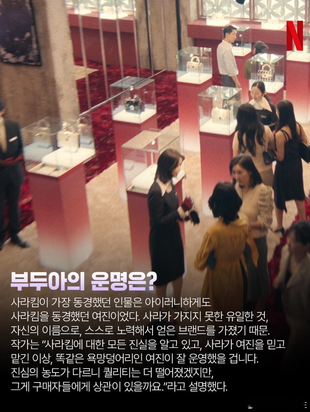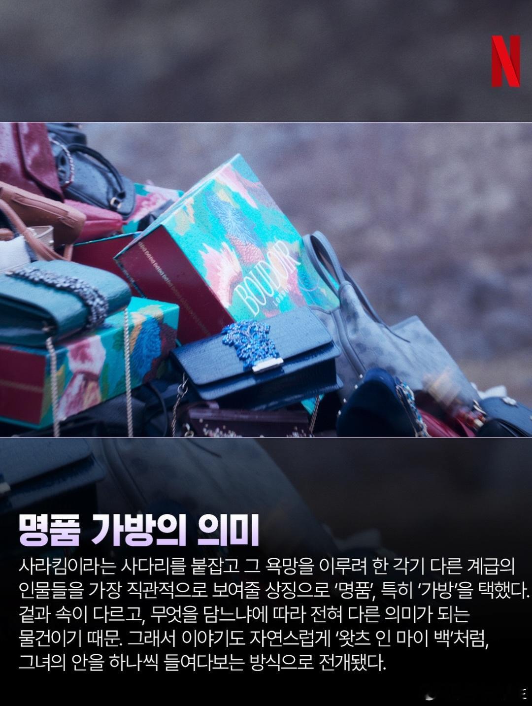 莎拉的真伪人生 我们不知道的细节~芭朵奥的命运将如何?讽刺的是,莎拉金最钦佩的人反而是同样钦佩她的汝珍。汝珍拥有莎拉金所缺乏的一样东西:一个通过自身努力建立、属于自己名字的品牌。因为她知晓关于莎拉金的全部真相,而莎拉金也将事业托付给了汝珍。同样被欲望驱动的汝珍,可以将生意经营得很好。质量或许会因诚意程度不同而有所下降,但这对于买家来说真的重要吗?宰贤首次出场时背的包,是芭朵奥男士系列背包。仔细看,包包上上面刻有芭朵奥的标志!每集都变化的片头序列每集特定的线索都隐藏在片头序列中。第7集将色彩和方向从红色反转成蓝色,以最大化反转结局的冲击力。第8集象征着莎拉金无法被确认的身份,其片头字幕会闪现和消失!通过丧失描绘的人物群像作者试图通过将每位受害者描绘成某个阶层的象征,来刻画多样的人物形象。正如台词“若想知道一个人的价值,要看他们没有什么,而不是有什么”所暗示的,作者选择通过“丧失”来刻画角色。诈骗受害的程度也因阶层而异。水库无名男尸!被发现时已成骷髅的男子,是一位独居在水库附近的30多岁男性。他已经失踪六年,但无人察觉他的失踪,因此其死亡未被记录。作者选择让他成为一个无名者,一个未知的男人,来讲述一个像睦佳熙一样“无人知晓的死亡”、“虽生犹死”,以及像莎拉金那样没有名字的人的故事!百货公司会长没有失去任何东西,现金充裕的洪诚信只失去了一棵松树,白手起家的汝珍蒙受挪用公款指控、失去了名誉,百货公司员工孝恩和多惠失去了工作,罪犯炳官在监禁中失去了自由,姜智焕失去了纯真,而处在底端的美静则失去了生命。雾炅失去了正义,而莎拉金失去了除了她赌上性命创造的“芭朵奥”之外的一切!芭朵奥包的设计!芭朵奥包的设计是简约与奢华之间的挣扎。艺术指导用两种概念进行了大量测试,最终选定了现在的芭朵奥包。其设计既体现了表面的财富与美丽,同时也传达出一种隐藏的虚伪感!芭朵奥奢侈包袋的意义我选择奢侈品特别是“包袋”,作为最直观的象征,来展现那些紧抓“莎拉金”这一阶梯、为实现自身欲望而挣扎的不同阶层人物。因为它是表里不一、根据所盛装之物而被赋予截然不同意义的物件。因此,故事也自然而然地以类似《What's in My Bag》的方式展开——通过逐一窥探她的内在而推进。为什么剧集没有按时间顺序排列?作者希望将莎拉金描绘成一个并非单一、确定的角色,而是一个活生生的存在,一个善与恶、理解与憎恨共存的生命体。因此顺序被安排成一种矛盾的方式,让她能够被视作一个复杂的生命体——从被钦佩的对象到魔鬼般的骗子,混合着怜悯与猜疑。如果剧集按时间顺序呈现,那看起来就会像一部简单的传记,而非一个可被多元解读的多面角色。