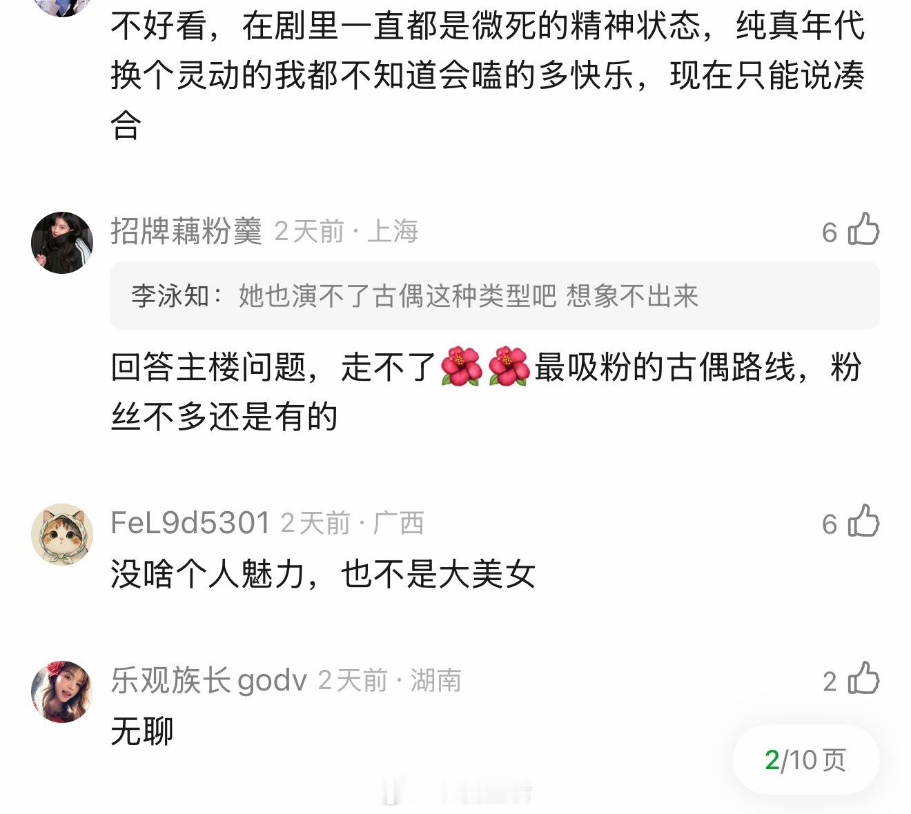 豆瓣有人问孙千为啥不吸粉,评论区的高赞回答几乎都是没长在观众的审美点上,以及戏里表现不吸引人。
