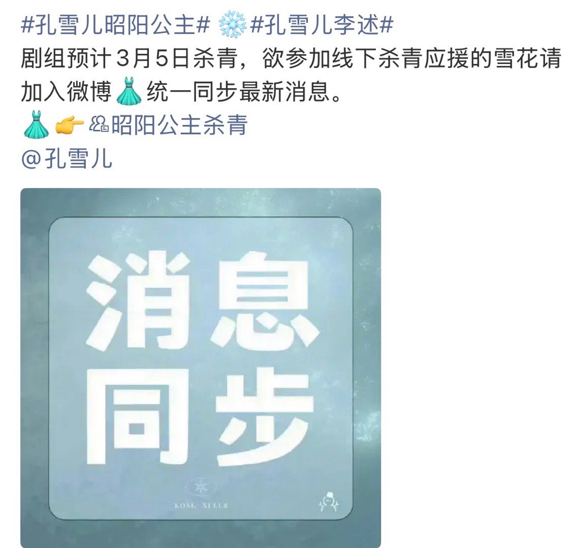 李宏毅 孔雪儿昭阳公主3.5日杀青 双方行程图已出