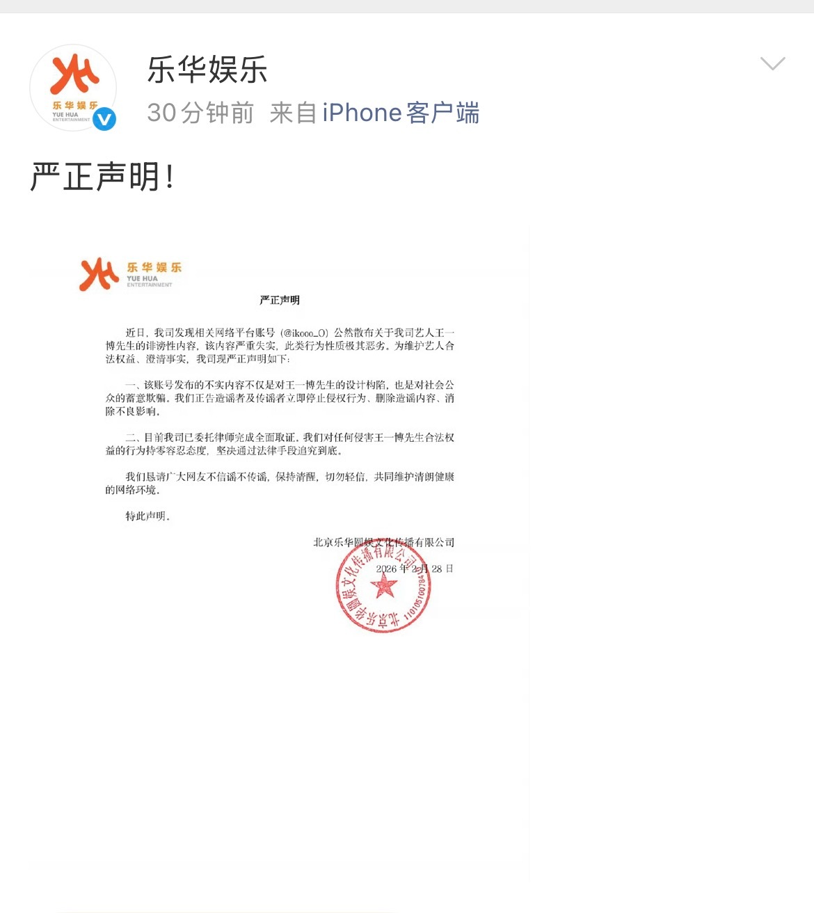 乐华娱乐声明