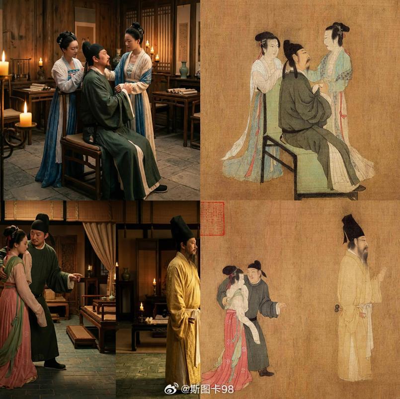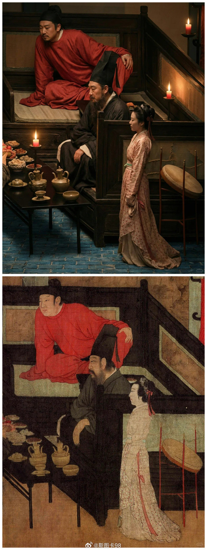 电影质感的南唐《韩熙载夜宴图》AI复原