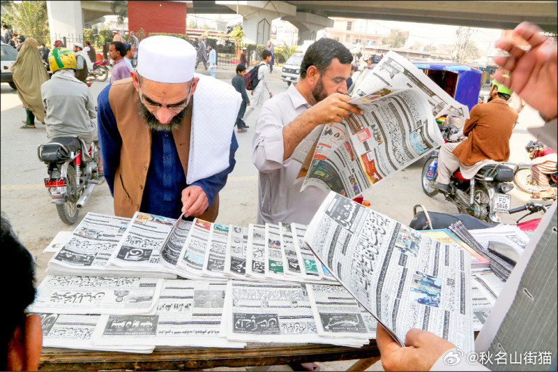 图1:在巴基斯坦西北部距离阿富汗边境最近的主要城市白沙瓦,民众一早阅读报纸刊登的两国互相展开跨境攻击的新闻。 (美联社)图2:巴基斯坦官方社群27日贴出照片,显示巴军空袭阿富汗首都喀布尔多处地点,冒出浓浓黑烟。 (路透)