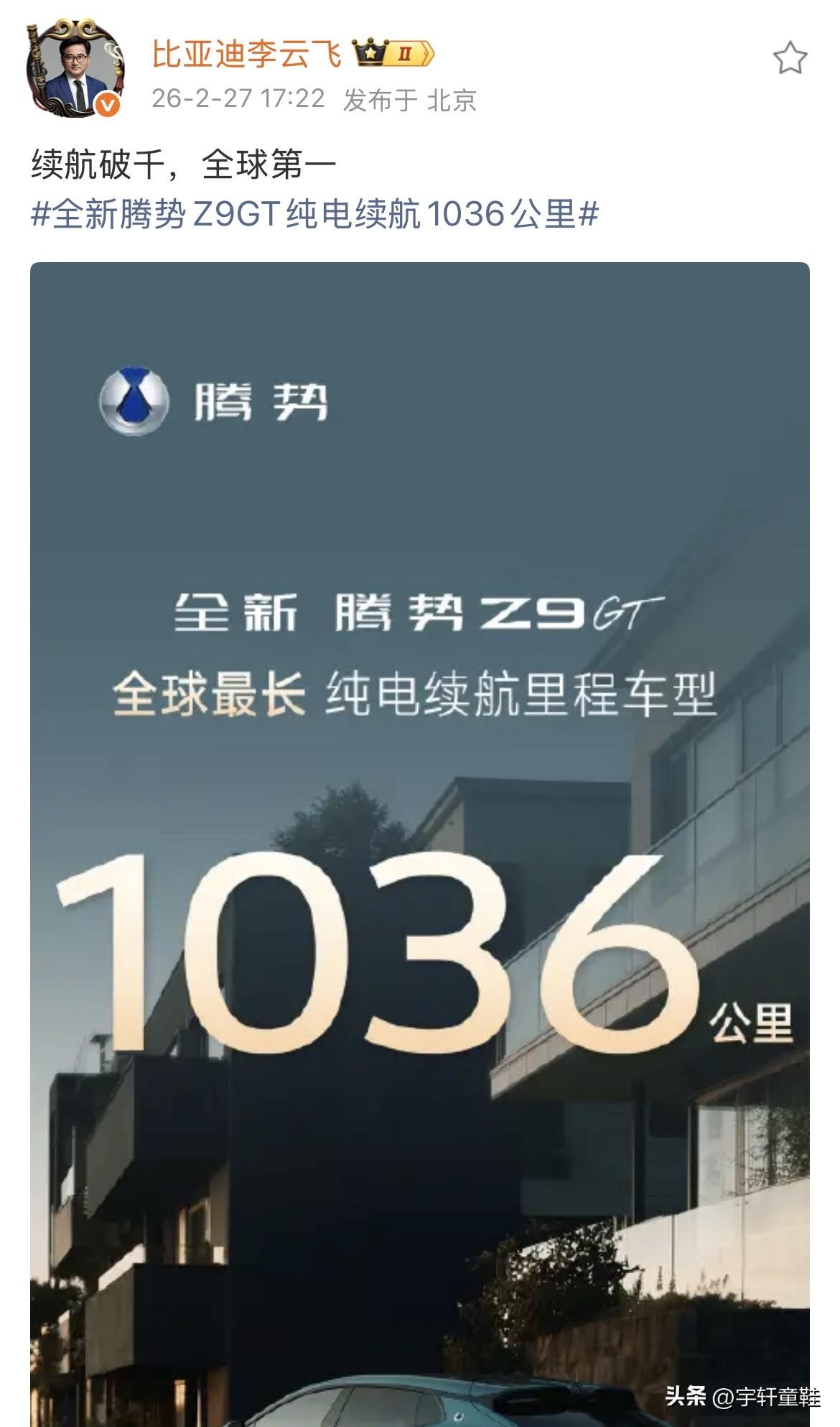 李云飞:“腾势Z9GT,续航破千,全球第一!” 恭喜,比亚迪纯电车型续航突破1000KM,成为全球第一! 话说,比亚迪这是“开窍”了吗?看到比亚迪高管开始高调宣传自家的车,还是有意外的! 但小编想说,这这样就对了,因为,即使你再低调别人,再为他人着想,别人依旧不会感谢你,所以,倒不如武装起来保护自己!大家说对吗?[呲牙]