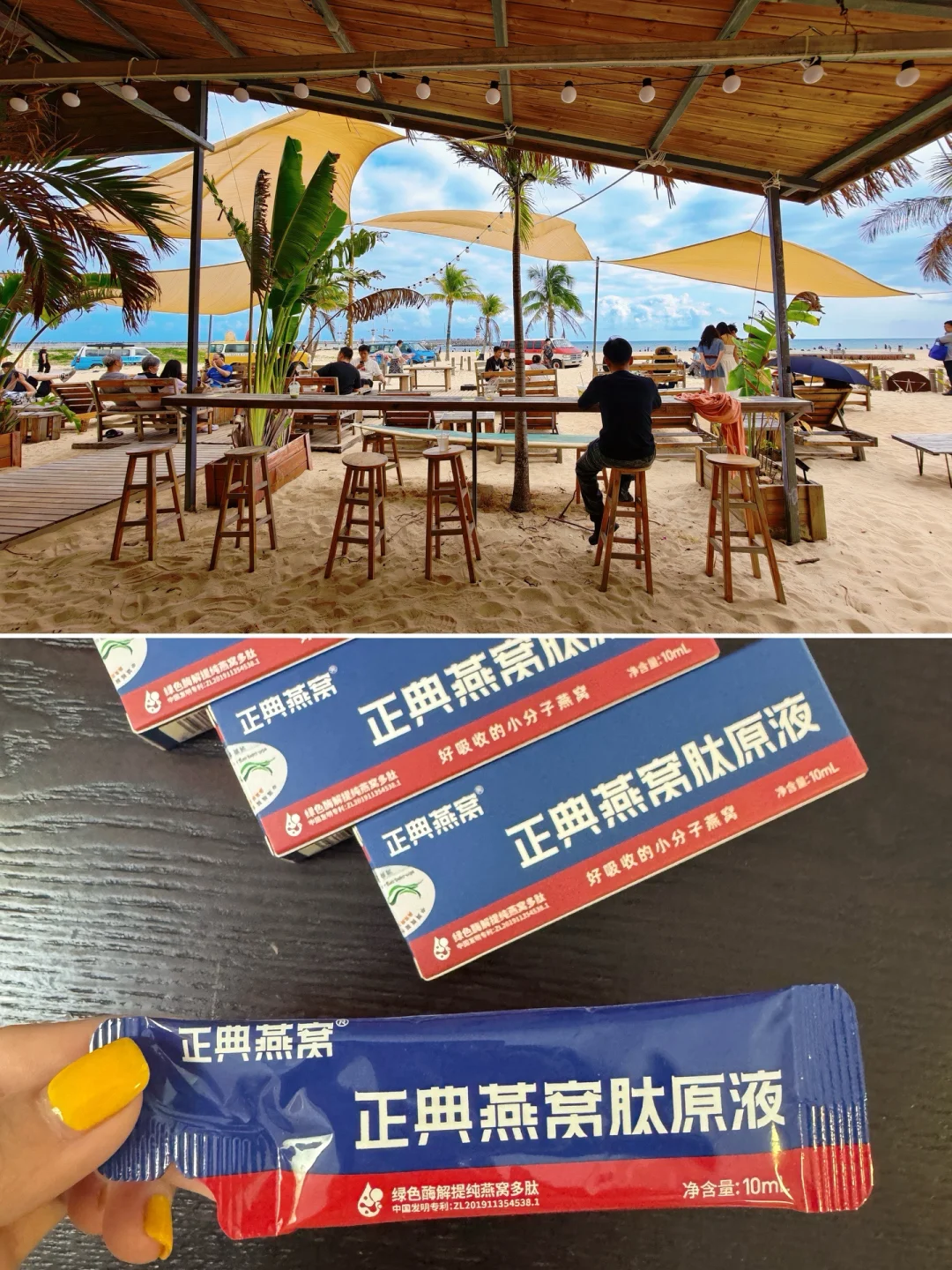 冬天来海南旅游,享受冬日的阳光沙滩,也要注意紫外线防护,除了做足防晒工作,我还给自己准备了正典燕窝肽原液,独立小包装,一次一条很适合带出门。配料表干干净净只有燕窝,还是酶解过的,吸收比传统的燕窝好太多了,在海岛晒太阳,皮肤也状态满满。