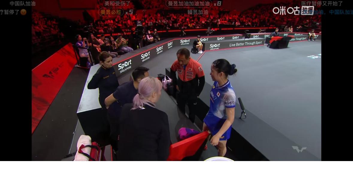 张本美和医疗暂停——拼王曼昱拼掉身体 新加坡大满贯女单1/4决赛, 王曼昱目前比分2:1张本美和, 这个裁判不停的判罚, 第三局关键分8:9,判曼昱回抛, 32.15度, 说实话,关键分判罚, 裁判有些过分, 导致曼昱9:11丢下一局, 局间张本美和医疗暂停, 好像是拼曼昱的时候, 腹沟处不舒服, 比赛还是注意身体, 不管真伤还是假伤, 职业生涯还很长! 希望张本美和正常回到比赛! 曼昱加油!