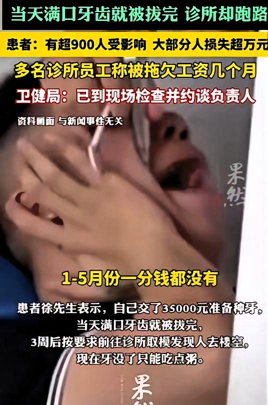 太惨了!广东深圳,一男子花35000元去诊所准备种牙,当天牙齿就都被扒光,男子按约定时间复诊时,发现该诊所已停业,相关人员无法联系。 目前男子因缺少牙齿,饮食受限,只能以流食为主,生活受到较大影响,同时面临后续治疗与维权问题。 此事提醒公众,口腔诊疗属于医疗行为,拔牙、种牙等操作具有不可逆性,一旦实施难以恢复,选择机构时应优先查看医疗机构执业资质,尽量选择正规医院或口碑稳定、资质齐全的诊疗机构。 在消费方式上,口腔治疗不建议提前一次性支付全款,预付式消费存在商家停业、跑路等风险,消费者容易陷入被动。同时,不要轻易接受非必要的全口拔牙方案,原生牙齿的功能与舒适度无法被替代,诊疗应以保留天然牙为优先原则。 此类事件也反映出部分小型诊疗机构在经营稳定性、服务诚信度上存在不足,消费者在接受长期治疗时,应提高风险意识。相关监管与维权渠道也需更加畅通,切实保障患者健康与财产安全。