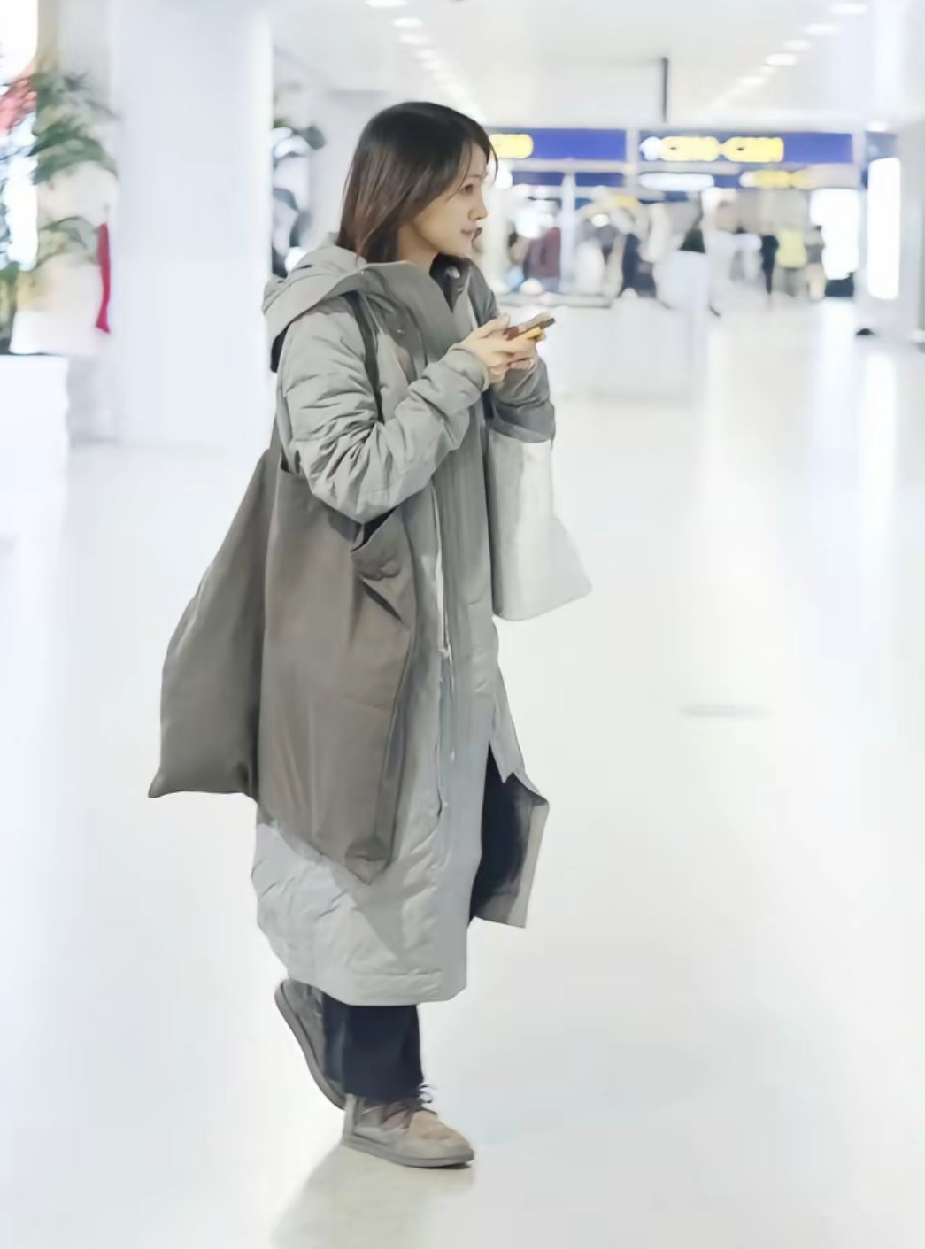 刘亦菲这条裤子挺养生,毕竟降温了肚脐眼必须护住啊