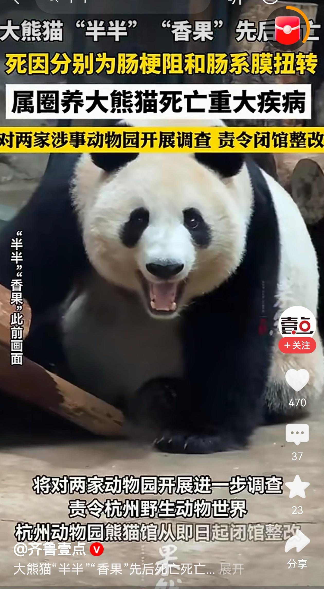 刚合家欢看成龙的熊猫计划,就爆出了两个动物园熊猫的消息。又是杭州的动物园,前几年跑的金钱豹,互联网又忘了。 调查闭馆,若没重拳根治,闹剧悲剧仍然会发生。