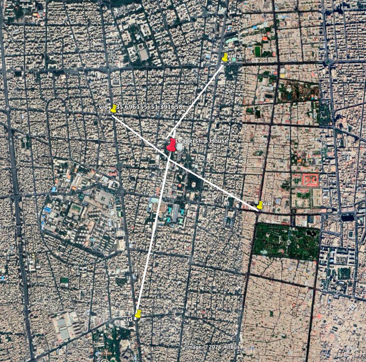 空客公司首次公开发布的阿亚图拉·阿里·哈梅内伊位于德黑兰的住所卫星图像,图像显示,2026年2月28日,美以联军对伊朗领导层发动空袭,造成建筑物倒塌和浓烟滚滚。此次空袭是针对伊朗军事和核设施的大规模袭击的一部分。 通过视频定位,确定了德黑兰的三个袭击区域:巴斯德街附近的政府大楼、情报部以及前总统艾哈迈迪内贾德的住所——纳尔马克72号广场,这些区域都位于重要的权力中心。 袭击发生后,哈梅内伊的下落仍然不明。伊朗随后向以色列和美国在海湾地区的基地发射导弹进行报复,引发了人员疏散和国际社会呼吁缓和局势的呼声,而特朗普则敦促推翻伊朗政权。