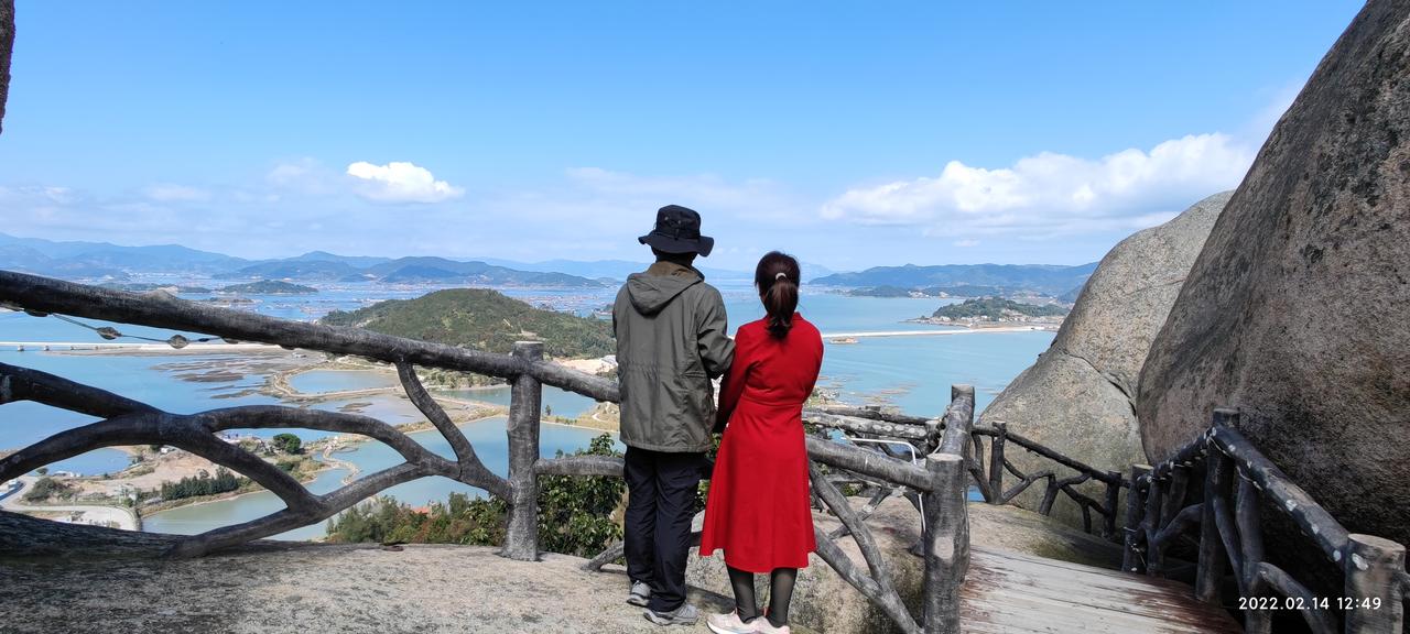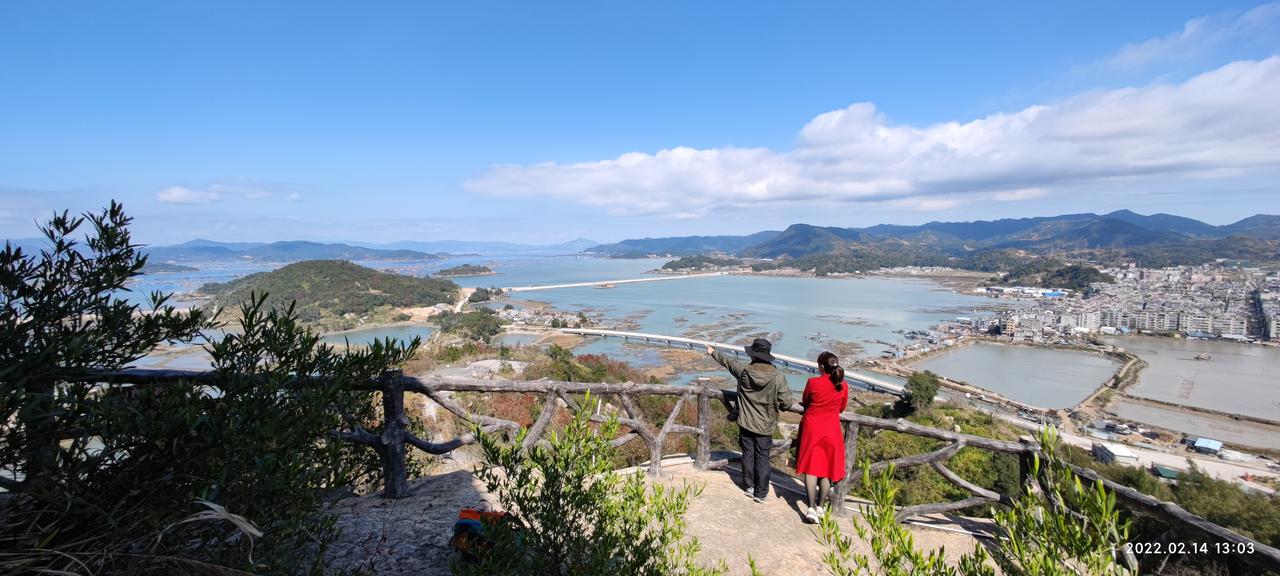【环国行摄】东南沿海篇:第53天:大京古堡—小皓海滩 行驶公里。 1.路线:大京古堡—下浒—上岐村—霞浦县城—小皓海。 2.主要景点:大京古堡、笔架山、下尾岛公园、狮子山、仙人顶 3.行程: 昨天晚上下了一晚上雨。今天早上起来一看,片片白云,天空如洗,太美太美了。 起来之后到附近的大京古堡,好像是个集,卖水产品的还不少。我们吃饭之后,买了一些水产品。蛤蟆鱼才5块钱一斤,买了二斤,小鱿鱼冻的30一斤,买了8两,花蛤13块钱一斤,买了二斤,打算今天晚上自己做,咱也吃一顿海鲜大餐。 之后决定开车继续向前,看一看笔架山的另一面。我们来到一个村的村外小山头上,这里眺望不远处的笔架山,是另一番景象。此时白云片片,配合上蓝天,再加上笔架山,风光还是相当不错的。 之后开车到大京海滩。我们前年来过,但海滩上破烂不堪。我们寻找上次来时,在一块礁石上玩耍拍摄的沙滩,但没有看到。就又寻着路向前。这里目前正在修路,从大金古堡到下围岛的公路。但是还没有修好,过了一个隧道之后,走到一座桥时封路了。始终没有看到我们上次玩的地方,应该是涨潮淹没了。 无奈返回,走来时的公路上山。在山坡上,在上次的位置又拍了一些笔架山的照片,这里看笔架山非常好,主要今天天气好。 之后十几公里来到下尾岛公园。走800多米来到景区里边,景区本身不要票。景色还是不错的,但现在正在涨潮,要看那个风蚀洞要下午1点之后,此时才11点。心里有点失落,要等到1点的话还要一个半小时。后来想想算了,还是先转别处吧。但具体转哪里也没有计划,因为好多地方我们也都去过了,关键是这里离其他景点都比较远,还要翻山。 然后开车到下浒镇,这个镇子附近有一座山,叫狮子山,上次我们上来过,从这里登高看海景特别好。我很喜欢故地重游,回想当时已经两年了,真的是时光如梭呀。 登上山峰视野非常壮观,感觉比上次要好一些。在上山的过程,我搜寻霞浦县北壁乡景点,突然发现了两个视频,是介绍北壁乡两个山的,看山上有好多散落的奇石,有一块风动石,特别让人动心,还有一座寺庙,建在山顶之上,叫仙人顶。看海景应该相当不错。看介绍风景也非常好。就决定到这两个景点转转。这样一家伙感到时间比较紧张了。 下山之后沿着岛的东部的小公路,基本上都是盘山路,路很窄,要会车的话还要慢慢的。我开的飞快,有两次转弯时,车差点碰上,都有惊无险,也多亏我反应快,车技好。中间看到一座寺庙,叫米流寺,停车上汽转了转。没想到非常好,上面奇石多多,海景壮观,是额外的收获呀。 大约半个小时后来到那个风动石所处的池澳村,问了当地的人,说就在前面不远。过去了一看就在公路边,上面也确实写着风动石。但并不奇险。后来看到一座山头上奇石很多,问了当地村民之后,从一座小教堂旁边小路上山。但上去之后就那么回事,不过有两块石头特别好。特别是一块石头像一条鱼头,就对着大海。 之后开车继续向前,导航上岐村。仍然是弯弯曲曲的盘山路,在一个路口看到了指向景区仙人顶的路。从这里开始陡坡上山,有三四公里吧,来到仙人顶停车场。停车场视野非常开阔。然后上山,停车场到山顶并不高。上到山来风景超美,山顶的海拔500多米。山下就是水,天一色碧蓝的大海。对面是群峦叠嶂的的山峰。这是我看到的最美的海景吧,应该是。站在这么高的高度,直面山下的海景,再加上蓝天白云。我觉得这里是一个值得一来再来的地方,待到下午一定会有美丽的晚霞,将来有时间了,到这个停车场住几天,应该也是不错的。 依依不舍的离开。因为明天还打算看日出,要到杨家溪。这里离杨家溪还有100多公里,而要到杨家溪上午8:00~9:00最合适。所以今天的目的地是霞浦东边。 到霞浦县城之后没有停车,继续向东。没想到都是盘山路,晚上漆黑一片。开车相当吃力。而且不沿海,根本找不到露营的地方。因为买了一些海货,晚上必须吃掉,也只能露营。 开开开呀,终于靠近了海滩。原来这里就是小皓海滩。就露营这里了。 4.住宿:小皓海滩露营