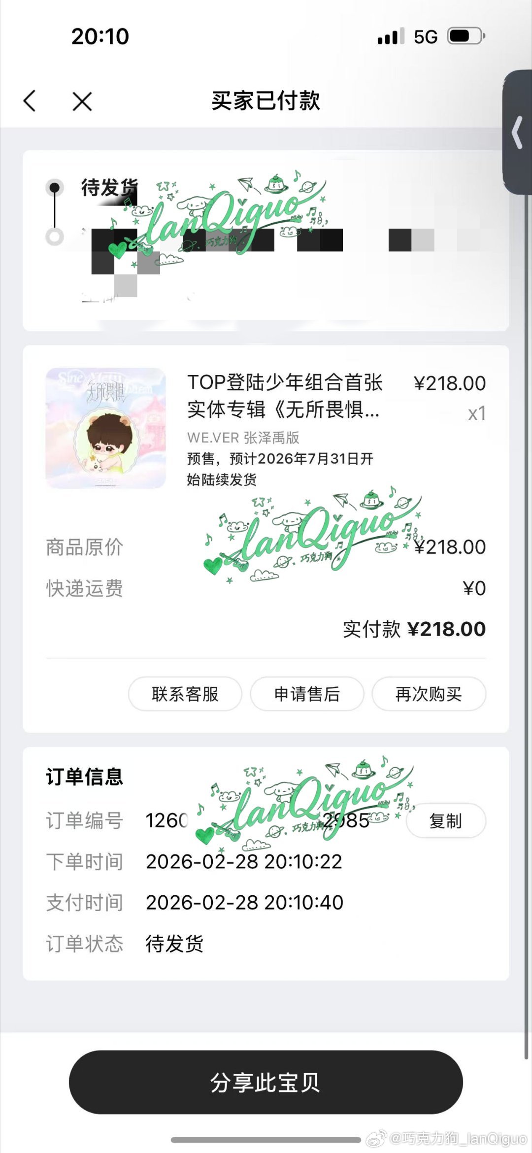 今天滴运气特别好~我两个订单都绑定噜嘻嘻