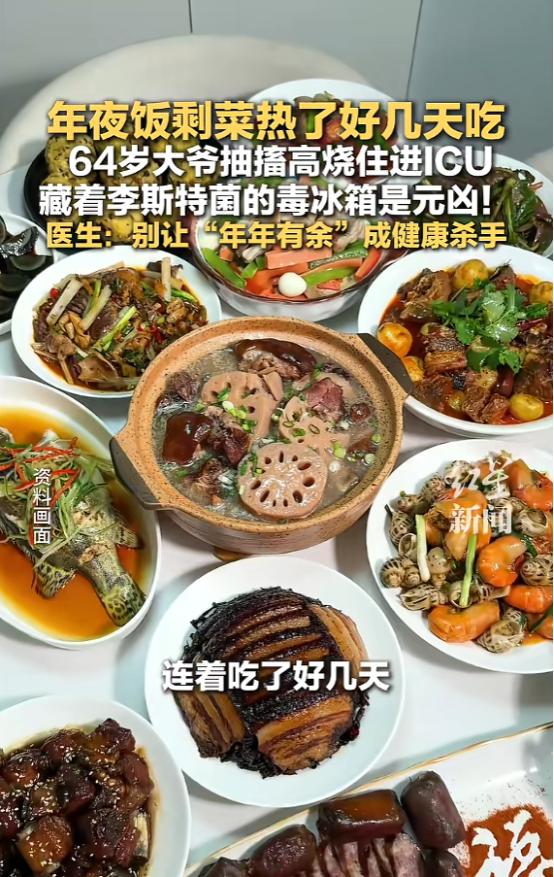 “悲剧还是发生了!”近日,湖南,一大爷由于舍不得倒掉年夜饭,便连着吃了好几天,没想到突然抽搐昏迷,还发起了高烧,送医后,被诊断为李斯特菌性脑膜炎,情况十分危急,直接住进了ICU!网友:吓得我赶紧倒掉剩菜! 冰箱门"咔哒"一声关上,谁能想到,死神已经开始倒计时了? 2025年春节刚过完,湖南一位64岁的李大爷,把年夜饭剩下的大鱼大肉一盘盘往冰箱里塞。保鲜膜裹得严严实实,心里那叫一个踏实——冰箱里冻着呢,能坏到哪儿去? 接下来几日,生活过得素简。打开冰箱,取出剩菜,放入微波炉轻转两遭,待热气蒸腾,便将菜肴端至桌前,简单一餐便就绪。闻着没馊味,看着颜色也正常,吃呗,能有啥事? 先是脑袋发晕,接着开始疼。李大爷没当回事,寻思着可能是这几天没休息好,老毛病了,忍忍就过去。哪家老人不是这么扛过来的?小病小灾的,犯不着往医院跑。 但这一回,身体压根没给他扛过去的机会。 半天。就半天的工夫,整个人像从悬崖上栽下去一样——浑身抽搐,意识开始模糊,站在跟前的老伴儿他都认不出来了,体温蹭蹭往上蹿,直接烧过39度。家里人彻底慌了神,连夜把人送进湖南省第二人民医院。 诊断结果出来,三个字像石头一样砸下来:脑膜炎。 李斯特菌性脑膜炎。 直接推进ICU。 一盘剩菜而已,怎么就能把人送进重症监护室? 答案就藏在冰箱里那个肉眼根本看不见的"房客"身上。 李斯特菌,圈里人送它一个外号——"冰箱杀手"。这名号可不是瞎叫的。一般的细菌,扔进0到4度的冷藏室,要么老老实实躺平装死,要么直接冻死拉倒。但这位爷不一样,人家在低温环境里活得滋润着呢,还能慢悠悠地繁殖后代。 湖南省第二人民医院重症医学科主任医师吕学文直言,它存在一个极为致命的“特异功能”——耐冷。这一特性不容小觑,需引起高度关注。 冰箱对别的细菌来说是坟地,对它来说是暖房。 更可怕的是这东西贼会伪装。年轻人身体底子好,免疫力扛得住,感染了顶多拉几天肚子,跟吃坏东西的症状一模一样,谁也不会往细菌感染上想。但要是换成老人、孕妇、小婴儿、或者免疫力本来就差的人,它立马就换了一副嘴脸。 先穿过肠道那层屏障,钻进血液里头,再一路过关斩将,突破血脑屏障——那可是人体最后一道防线——直接杀进中枢神经系统。脑膜炎、败血症,说来就来,招呼都不打一个。 重症病死率多少?20%到30%。就算命保住了,偏瘫、智力下降这些后遗症,可能得跟一辈子。 有人要说了,李大爷的剩菜每顿都热过啊,怎么还出事? 问题就出在这儿——"热过"和"热透",中间隔着一条人命。 从冰箱取出剩菜后,应将其中心温度加热至70摄氏度以上,且持续加热不少于2分钟。这般操作,可彻底杀灭李斯特菌,有效保障饮食安全。表面烫手、里头还温温的?没用。微波炉转两圈就急着端出来?不够。 这个标准,说实话,绝大多数家庭压根不知道,更别提做到了。 中国农业大学给的建议更直接:冰箱里的剩菜,3天是极限,超过这个时间,别心疼,直接扔。相较于荤菜,素菜更易滋生细菌。为保证饮食健康,建议素菜最好在当天食用完毕,切莫留至隔夜,以免细菌大量繁殖,危害身体健康。 说到这儿,有个话题绕不过去,说出来可能扎心。 老一辈人是真真切切苦过来的。经历过吃不饱饭的年代,"粒粒皆辛苦"对他们来说不是课本上的诗句,是刻在骨头缝里的记忆。让他们倒掉一盘菜,比割他们的肉还心疼。 这份节俭,值得尊重。谁也没资格站在旁边,轻飘飘来一句"扔了呗,值几个钱"。 但现实就是这么残酷——省下一盘菜的代价,很可能是ICU里的一张病床,是呼吸机,是病危通知书。 2025年2月25日,红星新闻报道了李大爷的遭遇,评论区直接炸了锅。点赞最高的那条留言写着:"吓得我赶紧把冰箱里的剩菜全倒了。" 此言乍听仿若戏言,然而其背后实则潜藏着切切实实的后怕之感,那股心有余悸,在话语落定后,仍隐隐作祟。因为几乎每个中国家庭的冰箱里,这会儿可能都躺着同样的"定时炸弹",就等着哪天引爆。 最后,说几句掏心窝子的话。 家里要是有老人、有孕妇、有小孩,下面这几条请当铁律来守:剩菜绝不超过三天,素菜绝不过夜,加热必须热透热到位,冰箱定期清理消毒,生的熟的永远分开放。 还有一条,可能是最要紧的——剧烈头痛、高烧不退、呕吐不止、意识模糊、浑身抽搐,这些信号但凡出现任何一个,别犹豫,别观望,别想着"再等等看会不会好转",直接去急诊,一秒都别耽误。 李大爷用一场ICU里的生死搏斗,替所有人交了学费。 这笔学费,可千万别白交了。