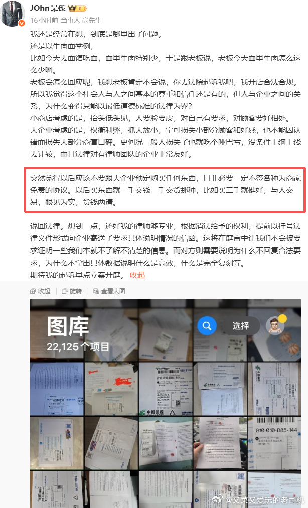 多数消费者的认知都是非常朴素的,一家企业出问题很容易波及整个行业,导致整个行业被质疑、导致众多消费者信心动摇,所以大企业是必须要有社会责任感的,影响力越大、需要承担的责任就越大。 因为你不能指望普通消费者的认知能有多高、一个处理不慎可能就引发大的舆情,所以有些事情企业就需要额外多担待,而不是一有纠纷就觉得自己委屈不能忍,之前预制菜引发的大舆论不就是这么来的么?所以要多往长远想想、多为行业想想、多为产业和国家经济发展想想。