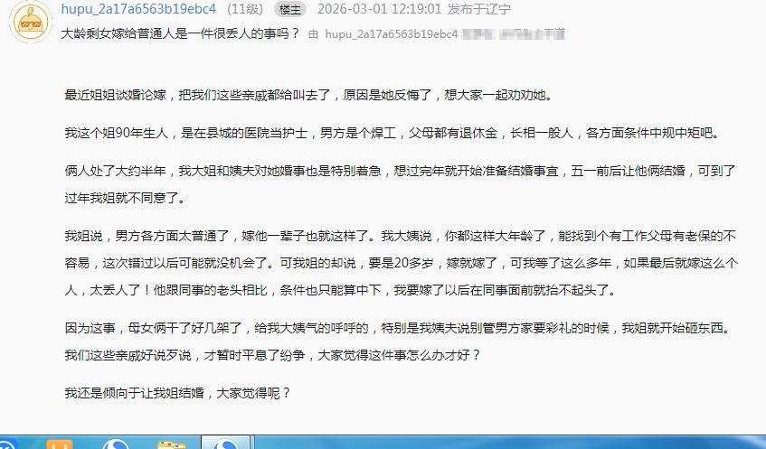 大龄剩女嫁给普通人是一件很丢人的事吗?