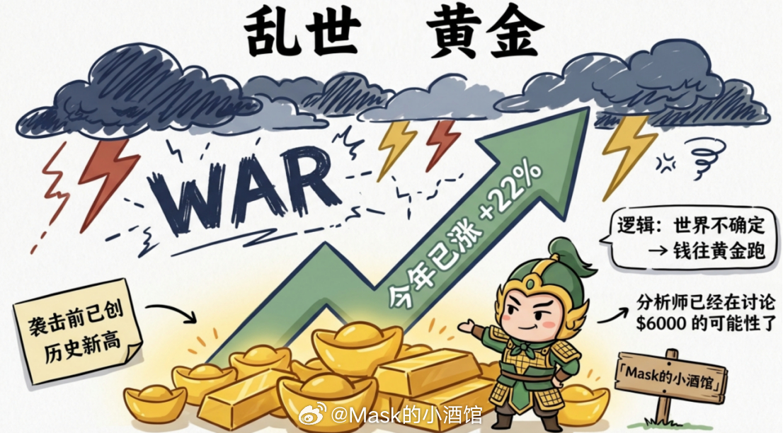 开战消息一出,市场上的避险情绪更是快速升温,分析师们已经开始讨论6000美元这个数字了。黄金为什么涨?逻辑很简单——当世界变得不确定,当战争可能影响货币体系、信用资产,钱就会往黄金跑。这是几千年来人类金融行为的本能反应。今年以来,黄金已经累计上涨了超过22%,可以说这轮黄金牛市本来就跑在前头,现在中东战火一点,相当于又加了一把柴。接下来24到48小时是观察金价的关键窗口。如果伊朗的反击保持有限,比如只打以色列或美军基地,金价会在高位震荡;但如果战火蔓延到红海、黎巴嫩,黄金就会同时受到避险需求和通胀预期的双重驱动,那就真的往新高冲了。