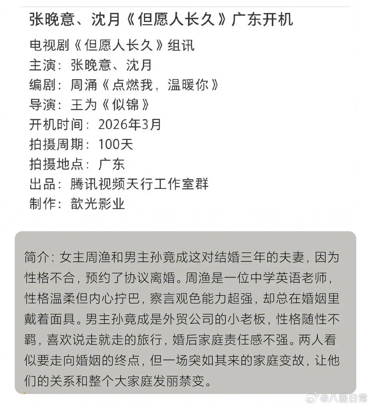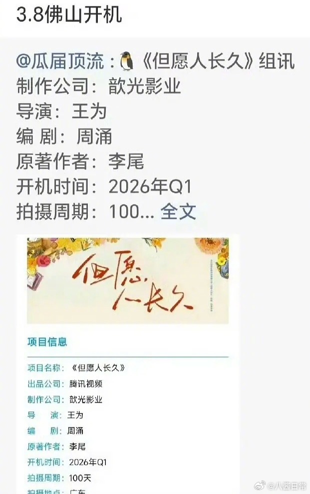 🍉张晚意、沈月《但愿人长久》3月8日开机