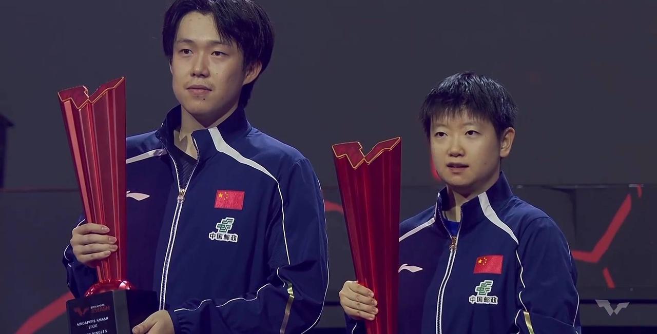 王楚钦与孙颖莎有一些相同点, 今天他俩都是第五次获得大满贯赛事的单打冠军, 在赛后采访中, 都说感谢国乒, 让他们在一月份的时候休息了一个多月, 身体得到休整, 技战术也得到了优化, 使得他们俩回到赛场之后, 在海口亚洲杯和新加坡大满贯连续两次夺冠, 他们俩今年开年以来, 这是第二次巅峰相见, 两个人的积分过万, 而且是男女单打的万分之王, 王楚钦是11225分, 孙颖莎是11600分, 他们两个人共同成长和进步, 大家说说他们两个人是不是很优秀? 合照时两个人很默契, 退场时, 两个人分开两边走, 他们一定是很开心的, 对此您怎么看呢?