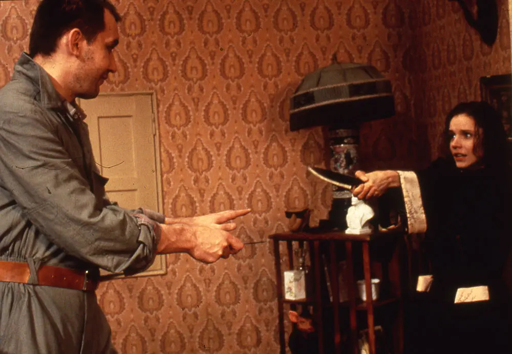 每日一片 《无声言证》(1995)被公认为商业电影最强时代的90年代中叶,好莱坞体系之外也不乏经典之作。这部由俄罗斯与英德合拍的犯罪惊悚片,可以被视为身残智坚型受害人系列的鼻祖级作品。故事主角是一个身患哑疾的道具师,她在一个俄罗斯片场工作时撞见了一起凶杀案,从此陷入了黑帮和私家侦探之间的多重缠斗。凭借超人的智慧和胆量,她历经九死一生,终成救局英雄。
