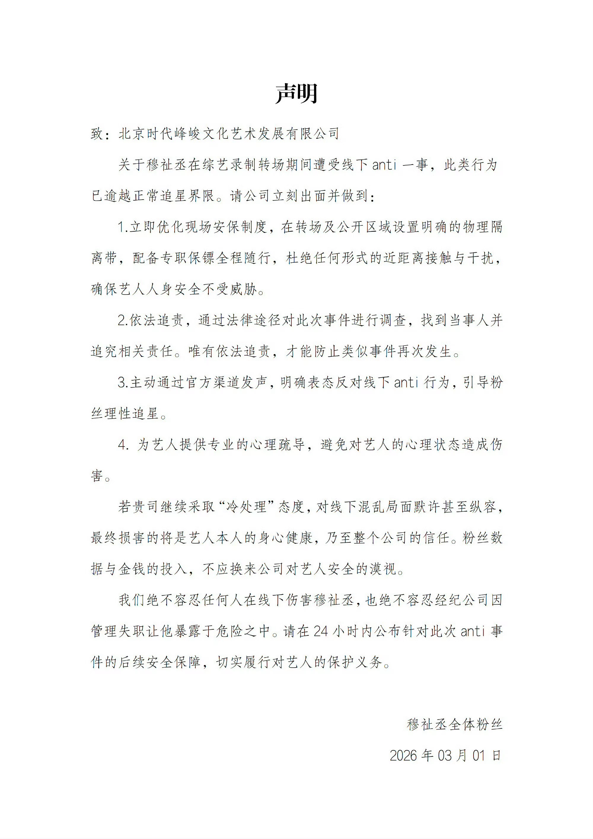 穆祉丞sjz针对线下anti发布追责声明