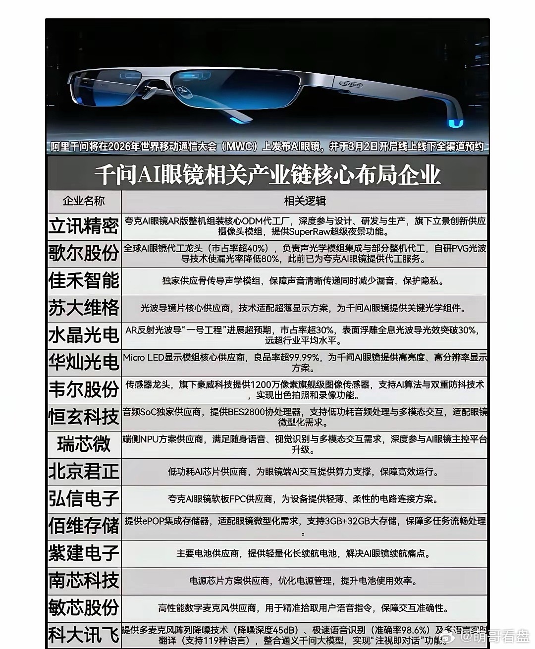 别只盯着地缘冲突板块,这些科技主线也值得关注:阿里千问AI眼镜发布、deepSeek新品发布、华为云码道等等科技题材!AI眼镜时代正式来临!阿里千问携首款产品登陆MWC,3月2日开启预约。相关概念龙头代表有歌尔股份、恒玄科技等等。DeepSeek V4下周发布!国内首个万亿参数开源大模型,让国产大模型技术持续对标国际水平!相关概念龙头代表有紫光股份、润泽科技等等。AI编程时代全面来临!华为CodeArts整合代码生成、知识问答、单元测试全流程,重塑开发范式。华为AI编程体开启开发新纪元。相关概念龙头代表有东方国信、金山办公等等。⚠️ 重要提示:以上内容仅为基于公开信息的概念梳理与标的分享,不构成任何投资建议。理财有风险入市需谨慎!