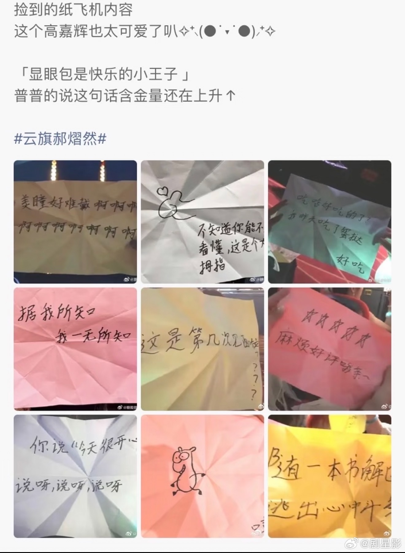 云旗纸飞机合集 云旗纸飞机寄语合集简直就是太让人觉得戳中心,而且能够看到了,他真的是很爱粉丝,而且也是对粉丝特别的好! 云旗纸飞机寄语合集