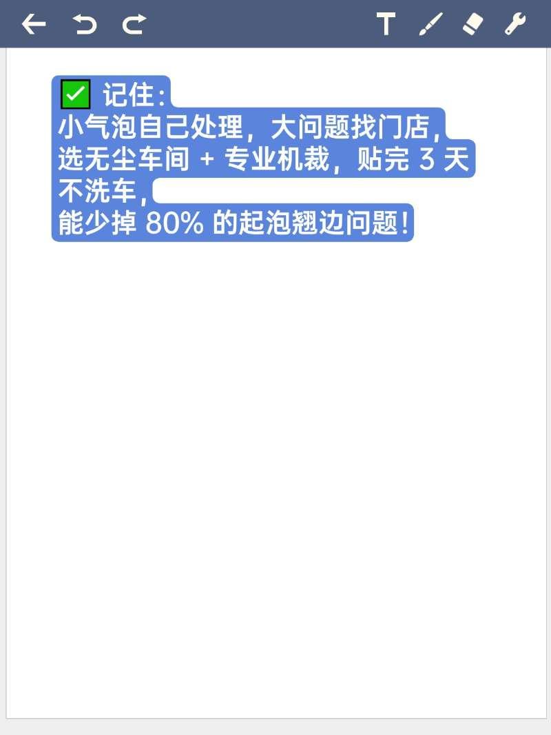 车衣起泡、起翘别乱撕!3 步教你轻松解决,不伤车漆车衣刚贴没多久就起泡、翘边?别慌,也别直接手撕!学会这 3 步,自己就能处理,少花冤枉钱~【来自懂车帝车友圈】