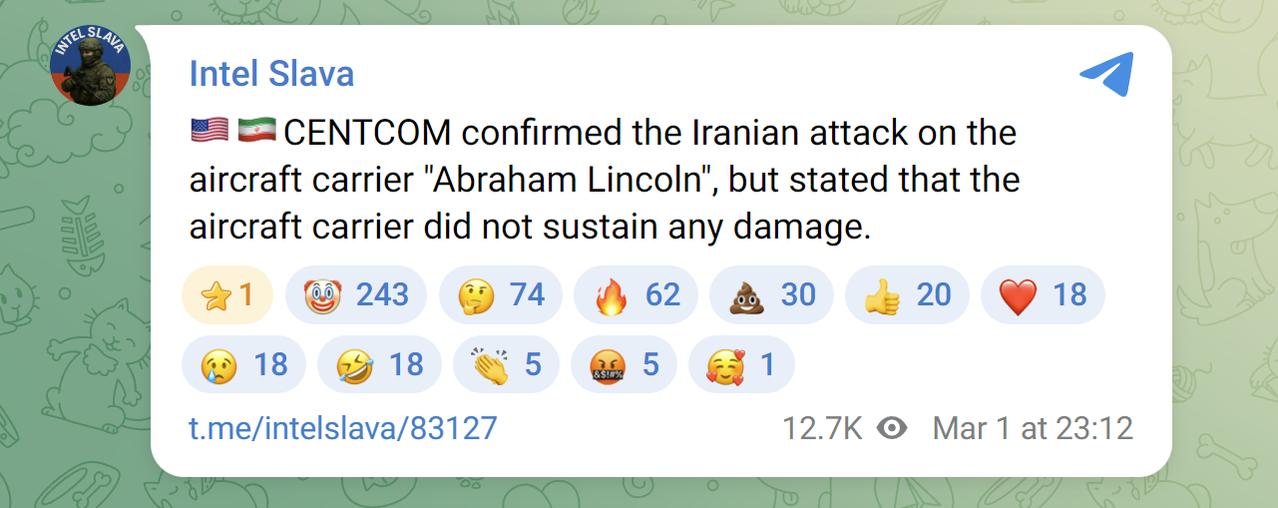 伊朗声称四枚导弹攻击林肯号,打中拼手气,没打中仍体现伊朗实力 伊朗伊斯兰革命卫队(IRGC)表示,击中林肯号航母的消息应该有水分,但仍然不是普通国家能达到的水平。 消息称伊朗发射四枚导弹击中航母造成美军损伤已经快速驶离,美军回应说有导弹来袭航母,但没造成任何伤害。 两则报道有几点可以确认的信息: 1-林肯号航母位置被定位 2-伊朗导弹确实发射并被观测到 3-航母还能正常行驶 也体现了伊朗的不俗的军事实力。 首先说定位,这个定位航母其实不容易 以前我们研究打航母战术,最困难的其实是如何发现,因为航母是可以移动的。 当时我们想了很多办法,最终还是通过部署北斗卫星彻底解决追踪航母的困难。现在我们可以做到直播航母编队移动。 伊朗目前解决了这个问题,如何解决呢?肯定不是卫星,伊朗只有一颗俄罗斯帮助发射的卫星。 估计是利用无人机侦查发现的,上个月伊朗曾经发布过无人机拍摄林肯号甲板画面。 伊朗无人机技术还是不错的,知道航母编队大体位置,多派几艘轮流排查,很容易发现并回传位置。 其他国家没有大量卫星,没有先进无人机,就只能被动挨打了。 其次是发射导弹能力 我们都知道,林肯号航母时速30节(暂按60公里),无人机发现航母,美军也可能发现无人机,美军必然会进行转移,所以导弹需要快速发射。 导弹发射如果延迟超过10分钟,航母就已经驶离10公里。 延迟30分钟,航母驶离30公里 时间越久,对导弹搜索就是考验越大,超过半小时打航母应该就没有意义了。 所以伊朗快速部署发射能力不错。 再次是导弹速度,也就是飞行时间 之前消息称航母在伊朗海岸900公里之外的海域,如果一倍音速就要50分钟,航母跑50公里,这样也没有意义了。 如果三倍音速也需要15分钟。航母至少还能跑15公里,如果是5-10倍音速效果更好。 伊朗是拥有超高音速技术的,伊朗导弹速度甚至还可以更高。 最后,能不能打中航母 前边说了定位航母很重要,但航母能移动,速度、时间都很重要。 假设伊朗导弹20分钟发射(怕美国轰炸,平时躲起来,准备发射需要时间)。 如果再考虑到导弹飞行时间,假设三倍音速,导弹飞行15分钟。 航母已经跑了35公里,这个距离如果没有持续跟踪能力,怕也是没戏了。 不过也有土办法,就是多发射预覆盖。 伊朗的消息是发射四枚导弹导弹,应该是考虑到航母移动对可能的方向做了“全覆盖”。 这个就有点拼手气了。 即使导弹搜到航母,也很难突破航母编队的严密防空网。 所以其实打中很难。 伊朗也提到林肯号已经转移到更远海域,所以大概率没打中。 但也不排除击伤的可能性。如果伊朗这次不要命对航母发动大量导弹饱和攻击 ,林肯号航母能不能逃过不好说。 另外航母移动期间,会影响飞机起降的,会大大影响舰载机对伊朗的攻击。 所以对伊朗反抗美军打击行动是有实际影响的。 这次伊朗体现了自身不俗实力,可不是普通国家能比的。 美国对伊朗空袭