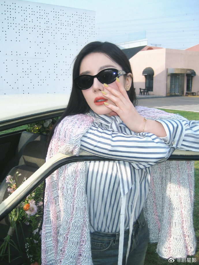 迪丽热巴墨镜鲜花 迪丽热巴墨镜鲜花真的是美的太有氛围感了呀,针织披肩完全呈现出来的优雅又温柔的大气感。迪丽热巴针织披肩