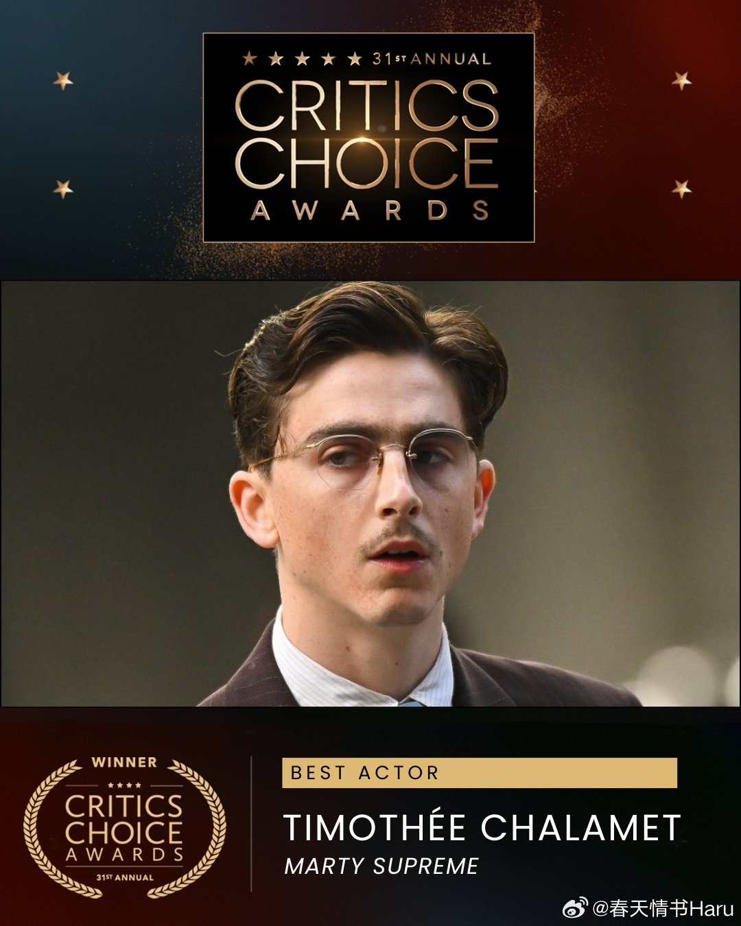 今年颁奖季四大风向标的获奖情况:英国电影学院奖:罗伯特·阿拉马约《妥瑞氏与我》评论家选择奖:提莫西·查拉梅《至尊马蒂》金球奖剧情类:瓦格纳·马拉《密探》金球奖音乐/喜剧类:提莫西·查拉梅《至尊马蒂》