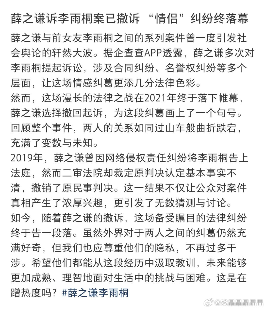 李雨桐和薛之谦之间怎么又开始了?之前薛之谦起诉李雨桐不是撤诉了吗?