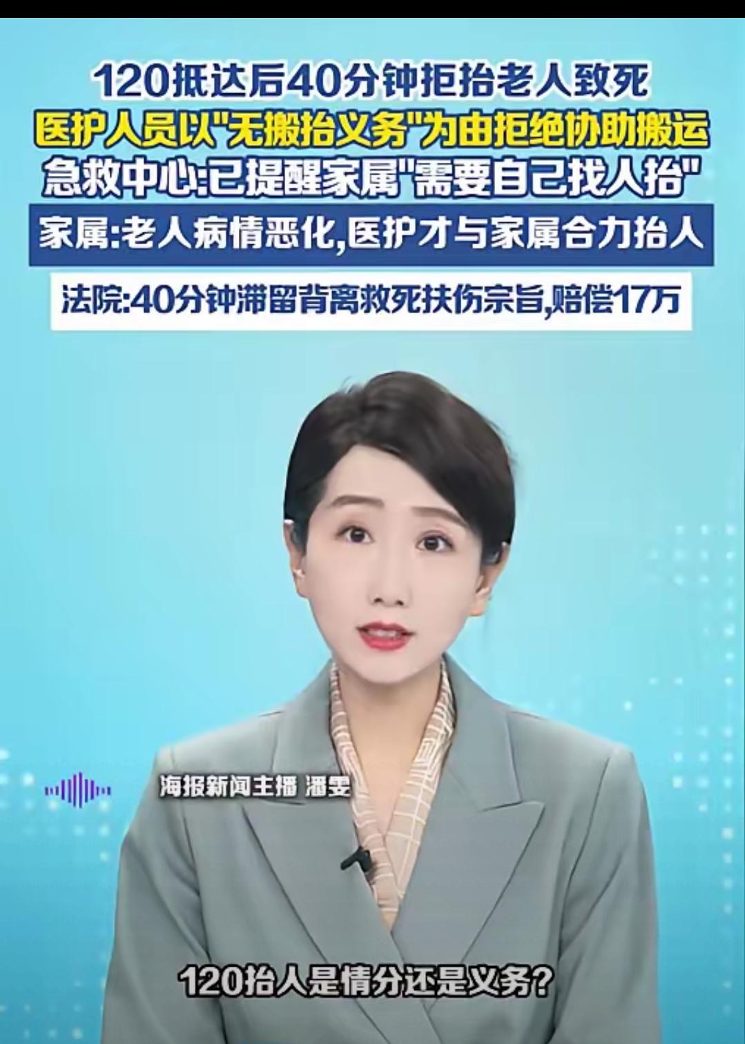 120不是来观望的,是来救命的! 山西阳泉85岁老人深夜突发重病,120明明4分钟就能到医院,却因为住在5楼没电梯,医护人员不肯帮忙抬人,硬生生僵持40分钟,最终老人没能救回来。 很多人说抬人不是义务,但我想说,急救的核心就是抢时间,生命面前,没有“不关我事”这四个字。法院两审都判急救中心担责赔偿,已经说明:不及时转运、不协助搬抬、不规范施救,就是失职。 比起冰冷的规定,救死扶伤才是底线。老人等得起,病痛等不起。我们不怕生老病死,怕的是明明有机会活,却被一句“没义务”堵死生路。 官方已经介入督办,希望赔偿尽快到位,更希望所有急救人员都能记住:你多伸一次手,可能就是一条命。 这件事你怎么看?你遇到过120不抬人的情况吗?急救乱象 医疗急救困境