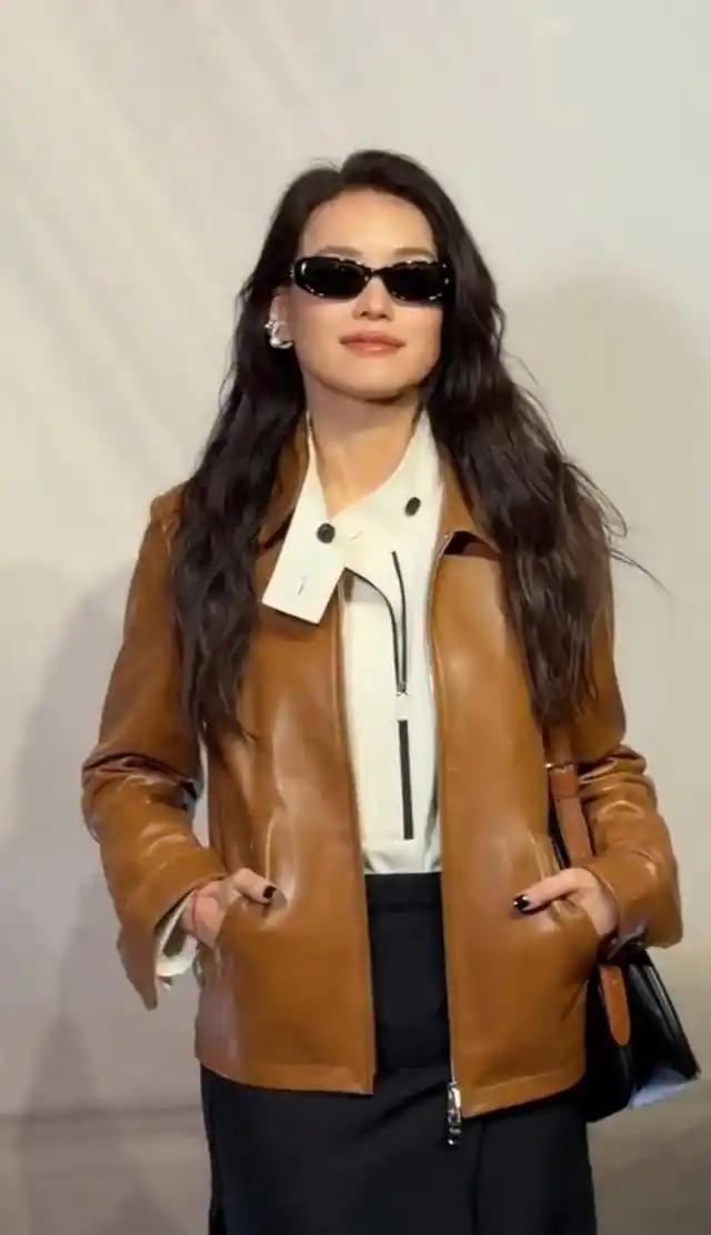 舒淇亮相米兰时装周,皮衣配短裙,酷飒中带点俏皮可爱