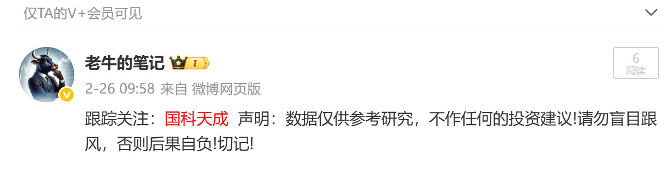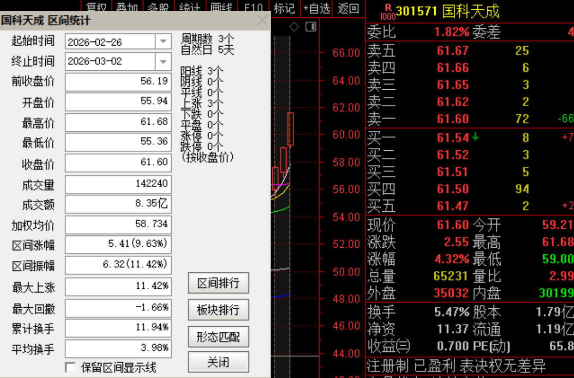 老牛的 国科天成 已经来到 61元了! A股