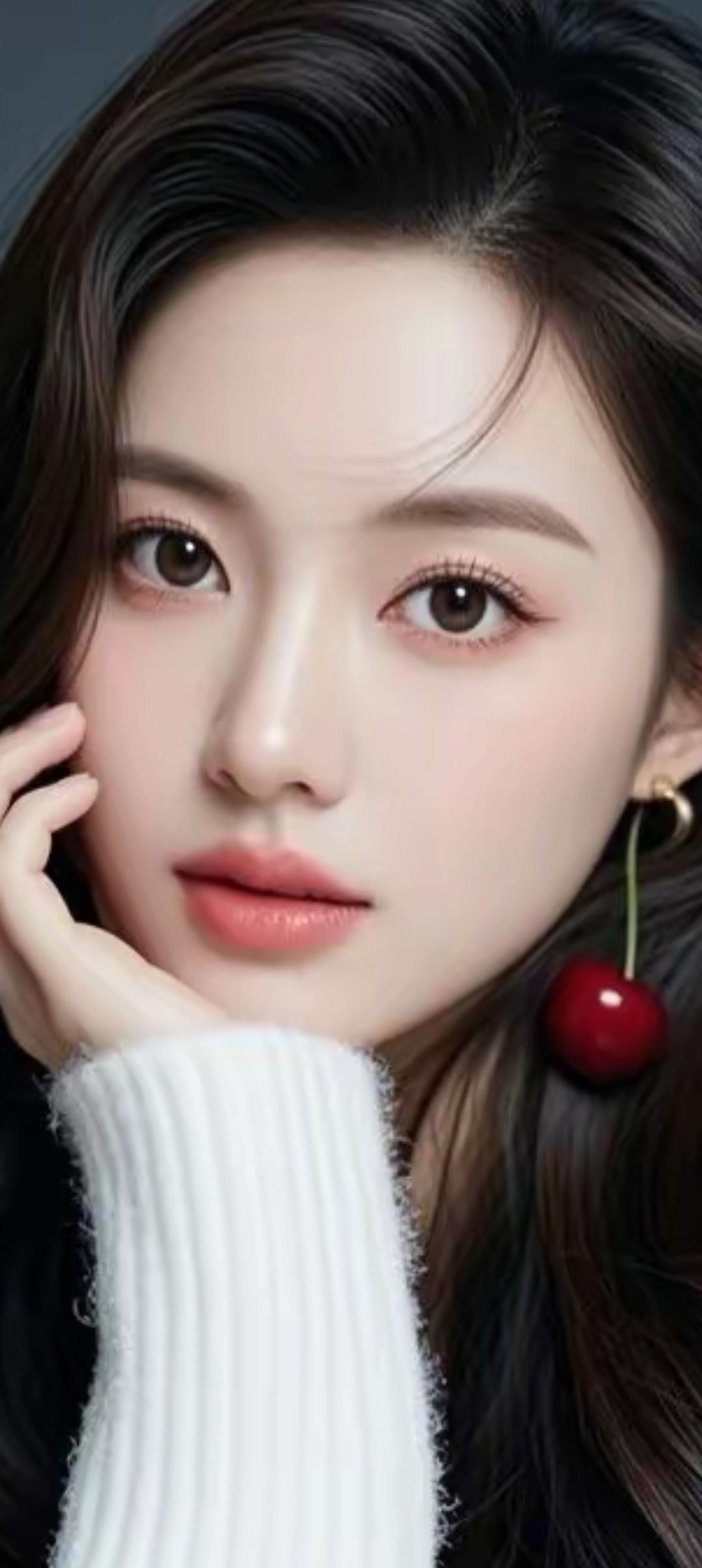 梦幻少女风,红唇与黑发相映成趣,温柔动人。