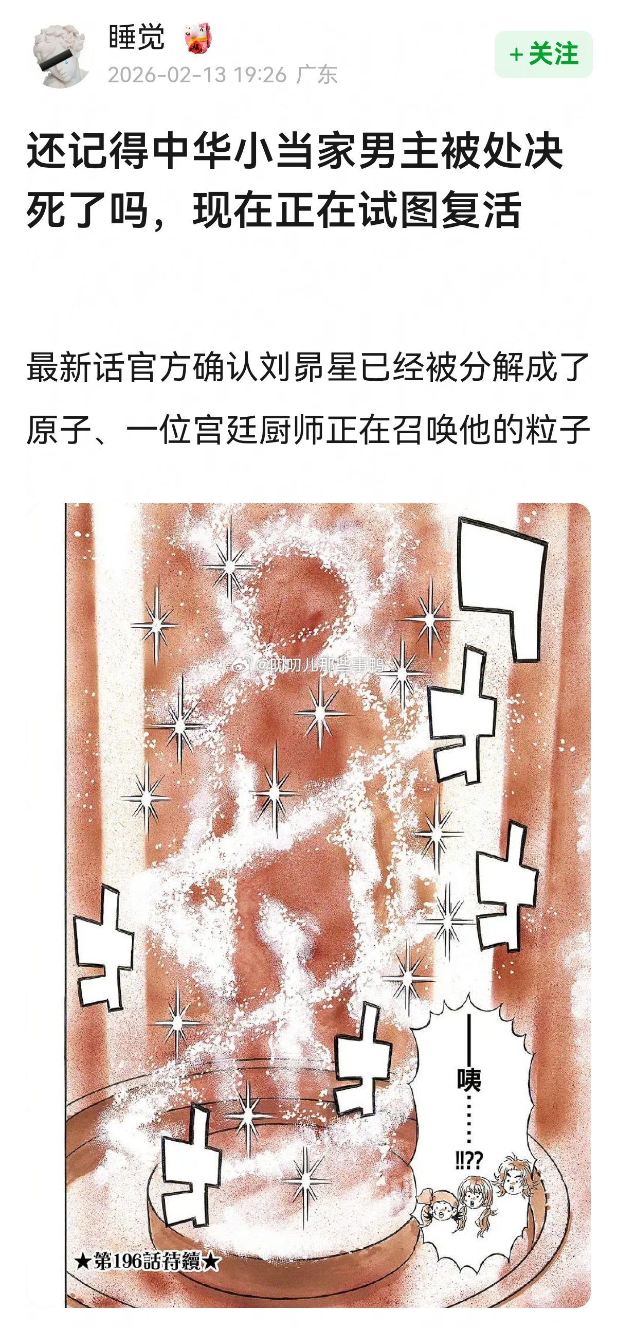 还记得中华小当家男主被处决死了吗,现在正在试图复活~