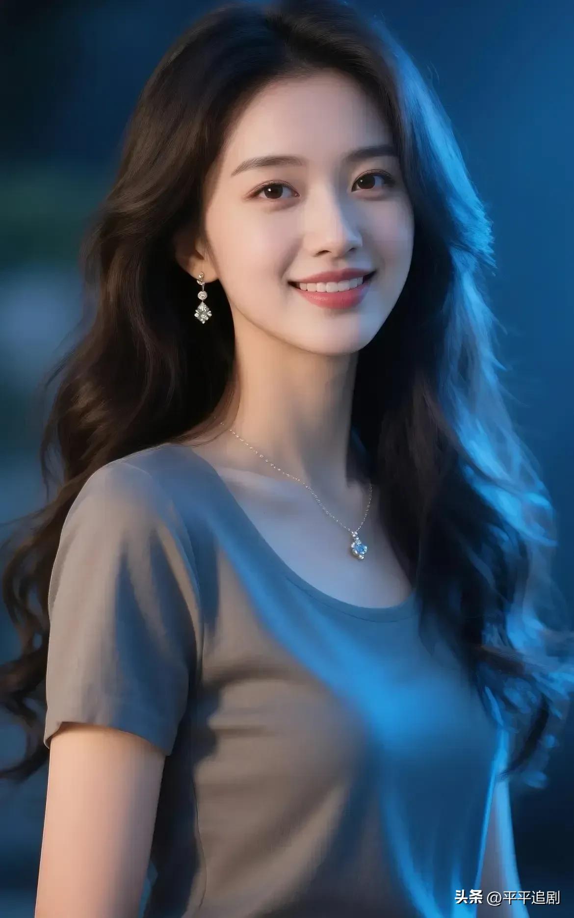 夜色漫过肩头,碎钻轻耀颈间,笑意藏在眼底,温柔了整片深蓝。 柔光里的温柔感