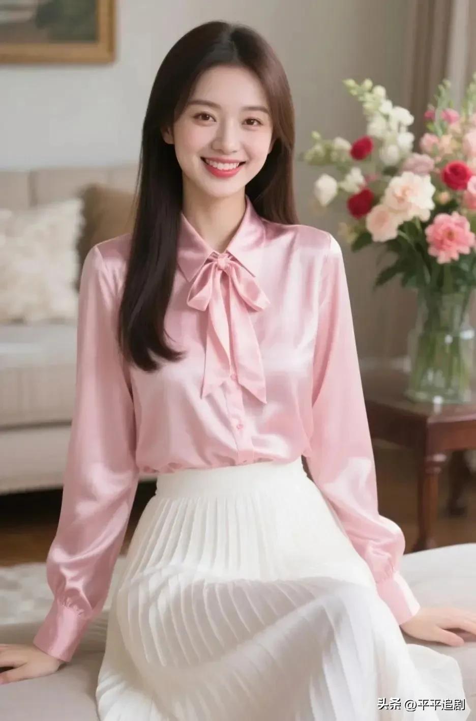粉衫系着温柔的蝴蝶结,白裙轻扬如春日的风,在花影里,笑意比春光更动人。 白裙少女感 温柔气质小白裙
