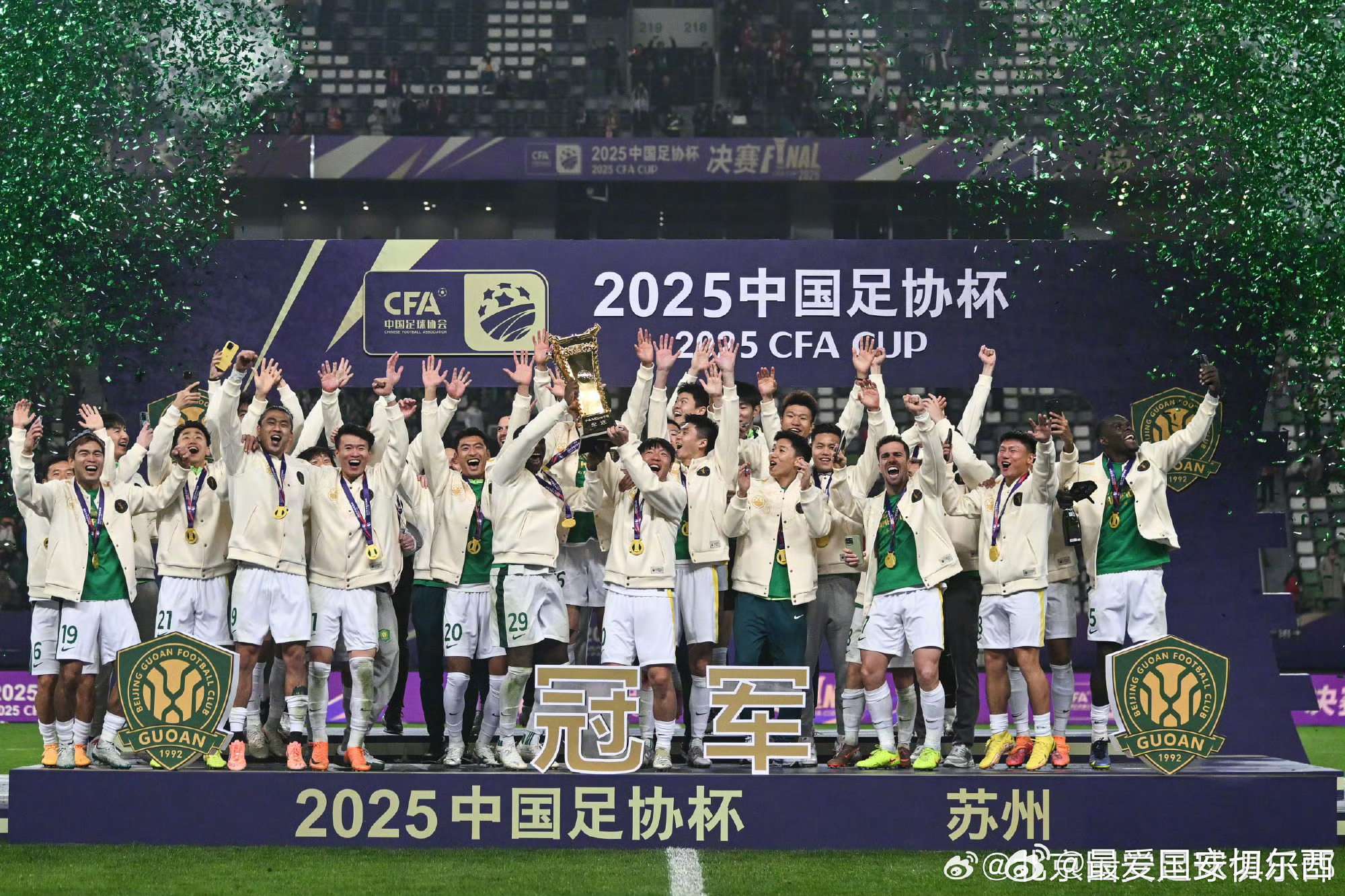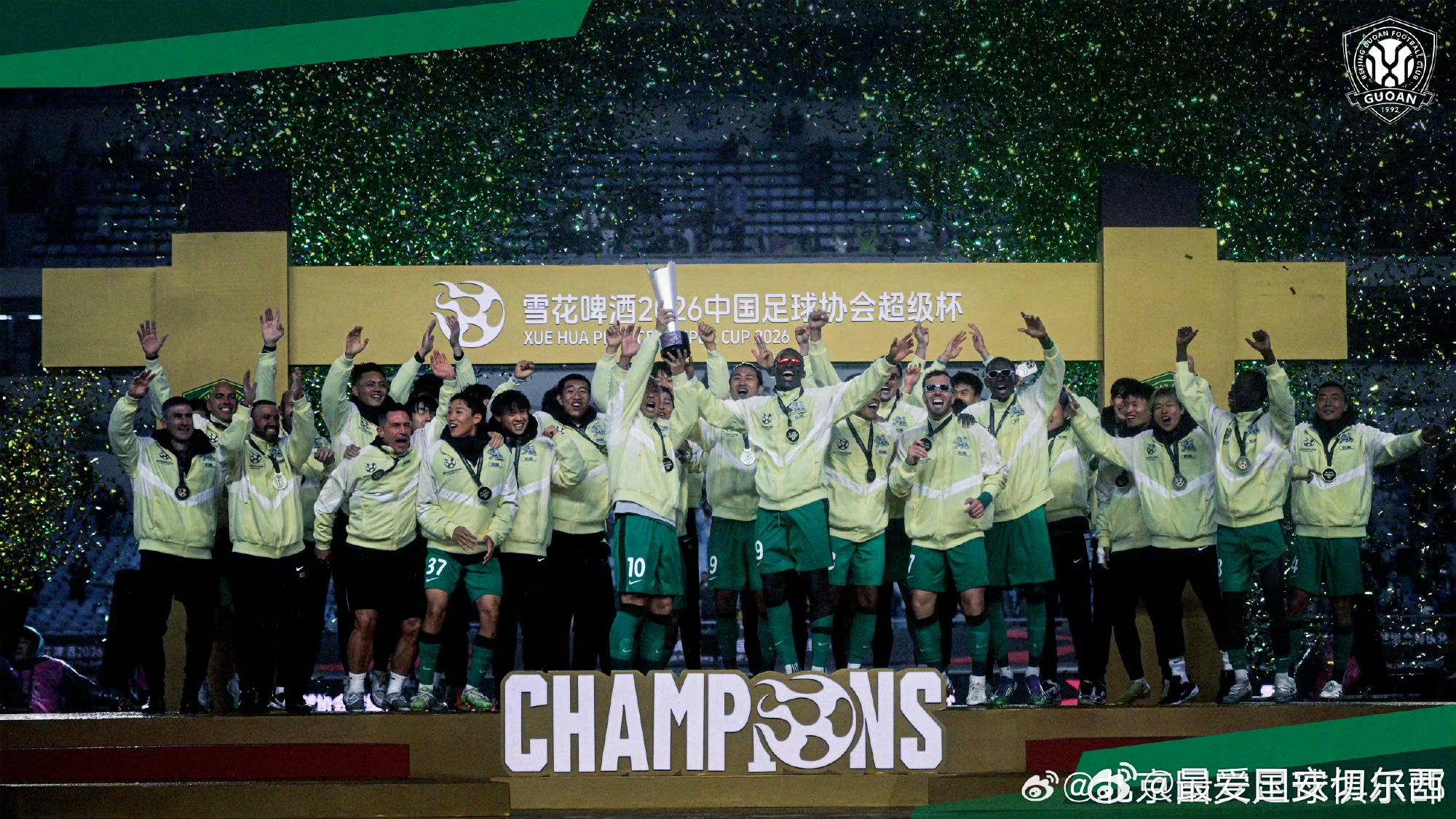 国安在2026年3月1号夺取超级杯冠军(图四),此前在2025年12月6日夺取足协杯冠军(图三),两个冠军中间相隔85天,是球队历史夺取两座冠军奖杯用时第二少的。用时最少的是97-98年,97赛季夺取足协杯冠军(图一),98赛季夺取超霸杯冠军(图二),两个冠军中间相隔74天,为历史最短的。这也是仅有的两次在四个月内夺取两座冠军奖杯。