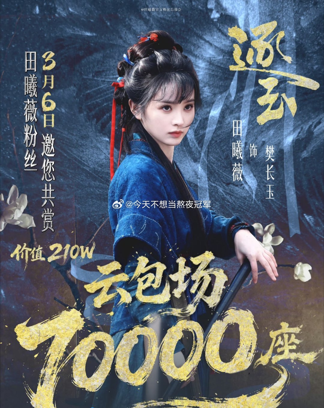 tg.田曦薇《逐玉》散粉☁️包场7w座,樊长玉双平台角色热度破亿逐玉田曦薇逐