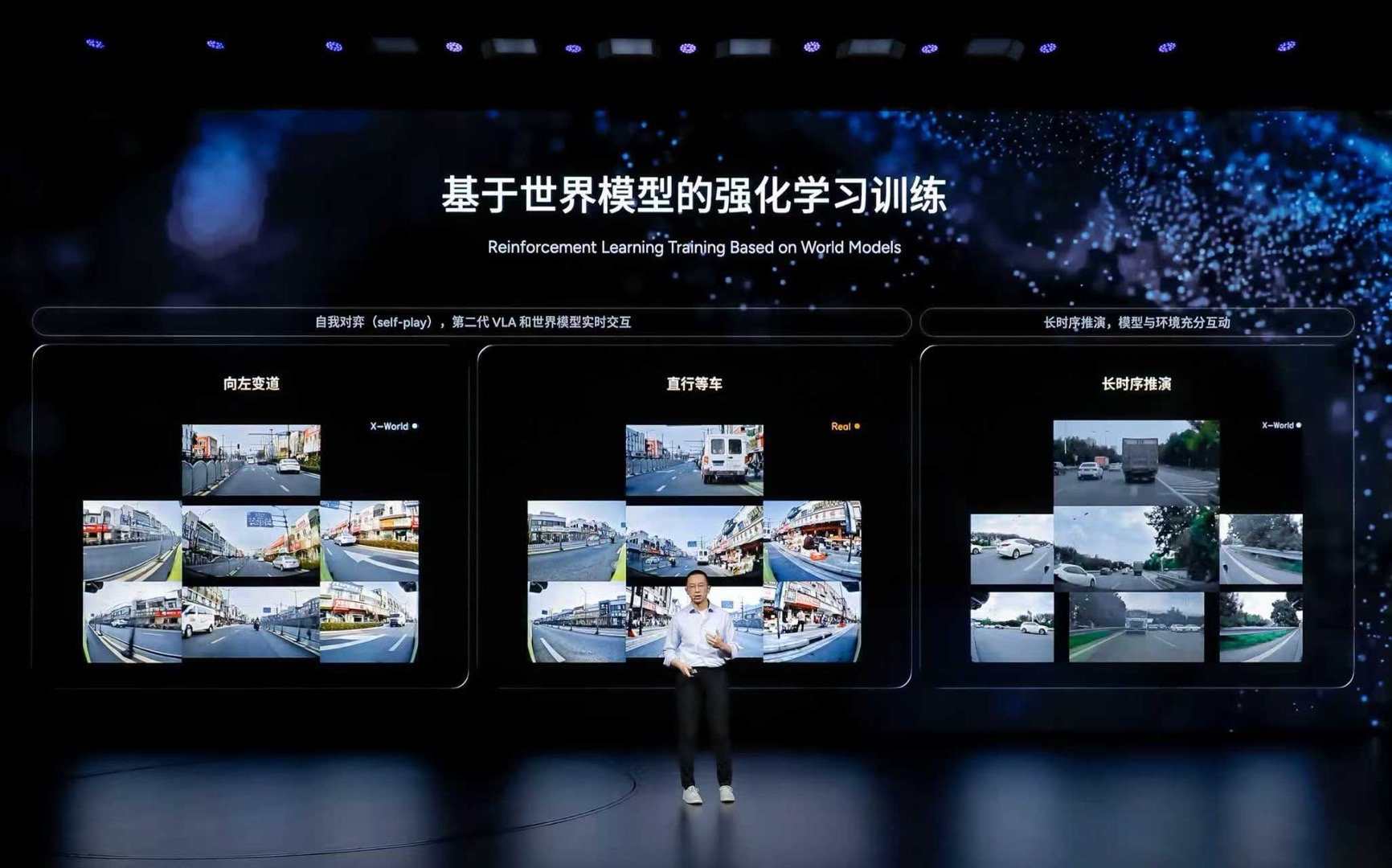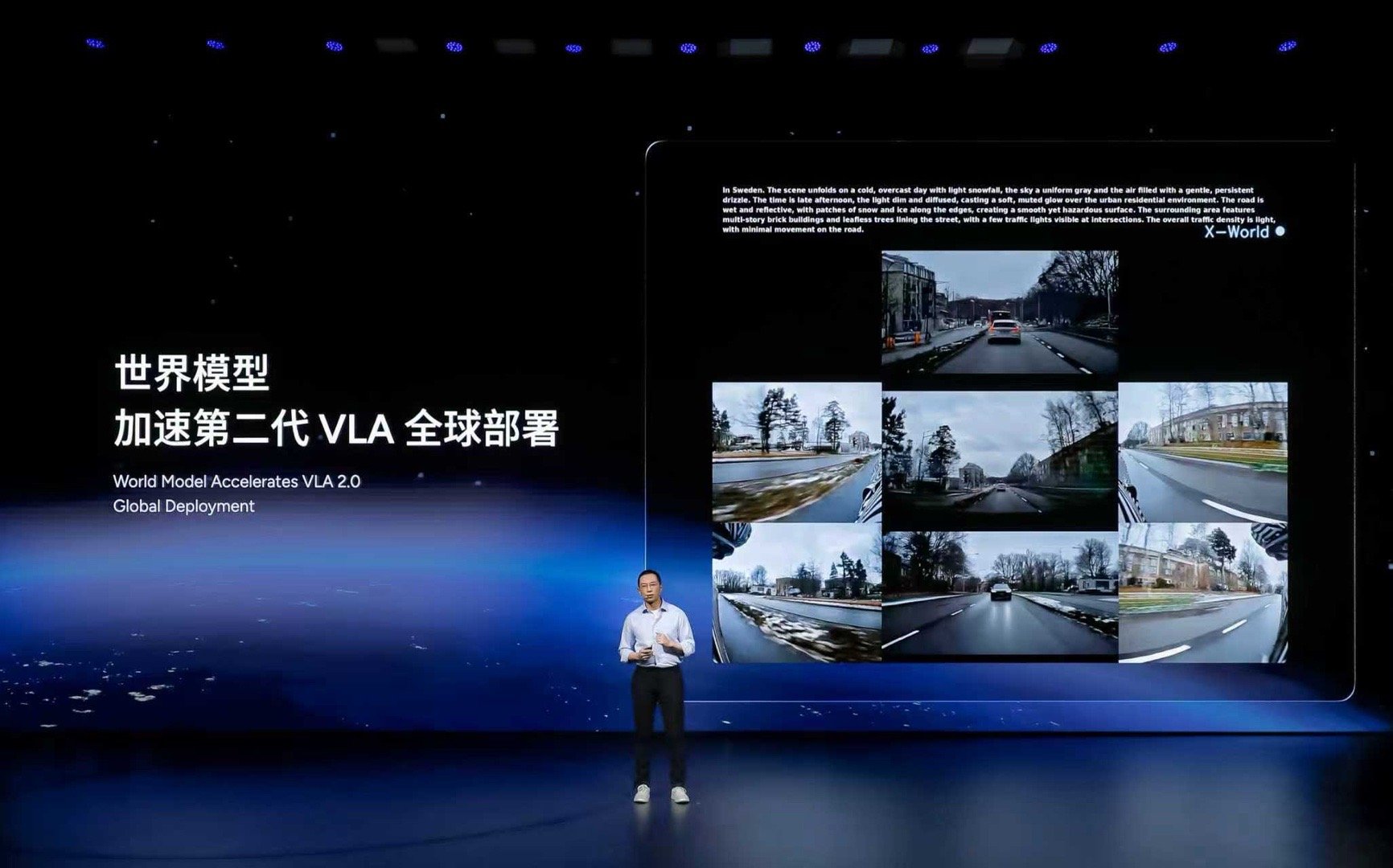 借助 X-World 世界模型,每天在虚拟世界仿真跑 3000万公里。从去年11月到现在,几个月硬生生迭代了 468 版模型。小鹏第二代 VLA 发布