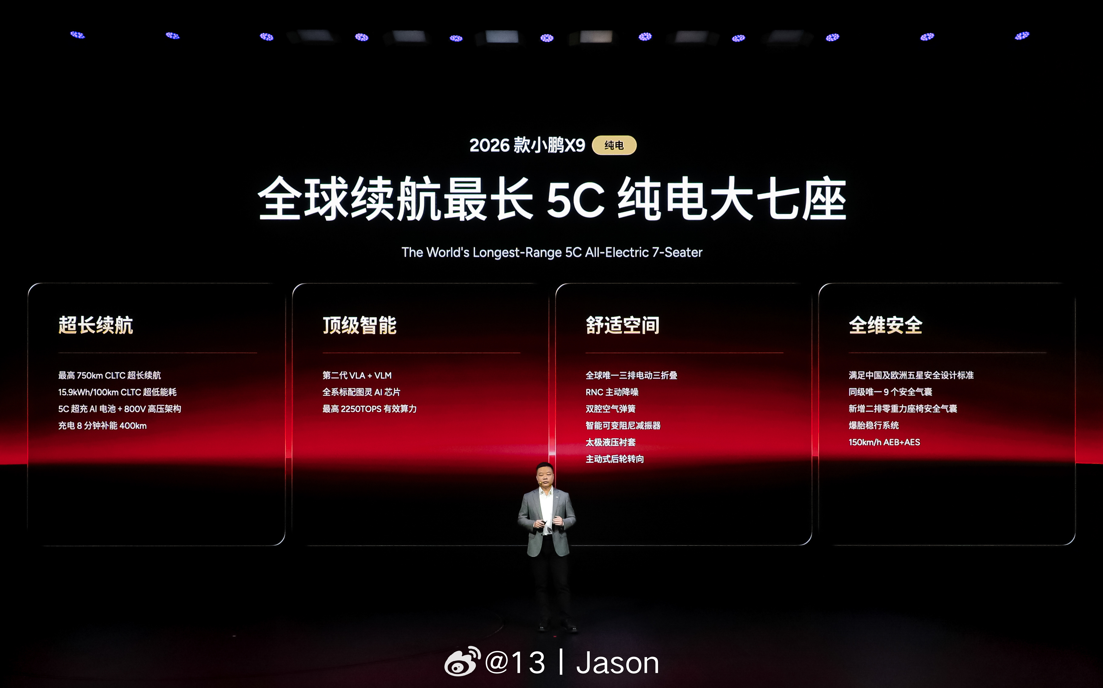 2026 款小鹏 X9 纯电版发布,感觉这是把「旗舰 AI」和「顶级舒适」缝合得非常完整的生活方式载体。帮你画一下重点: