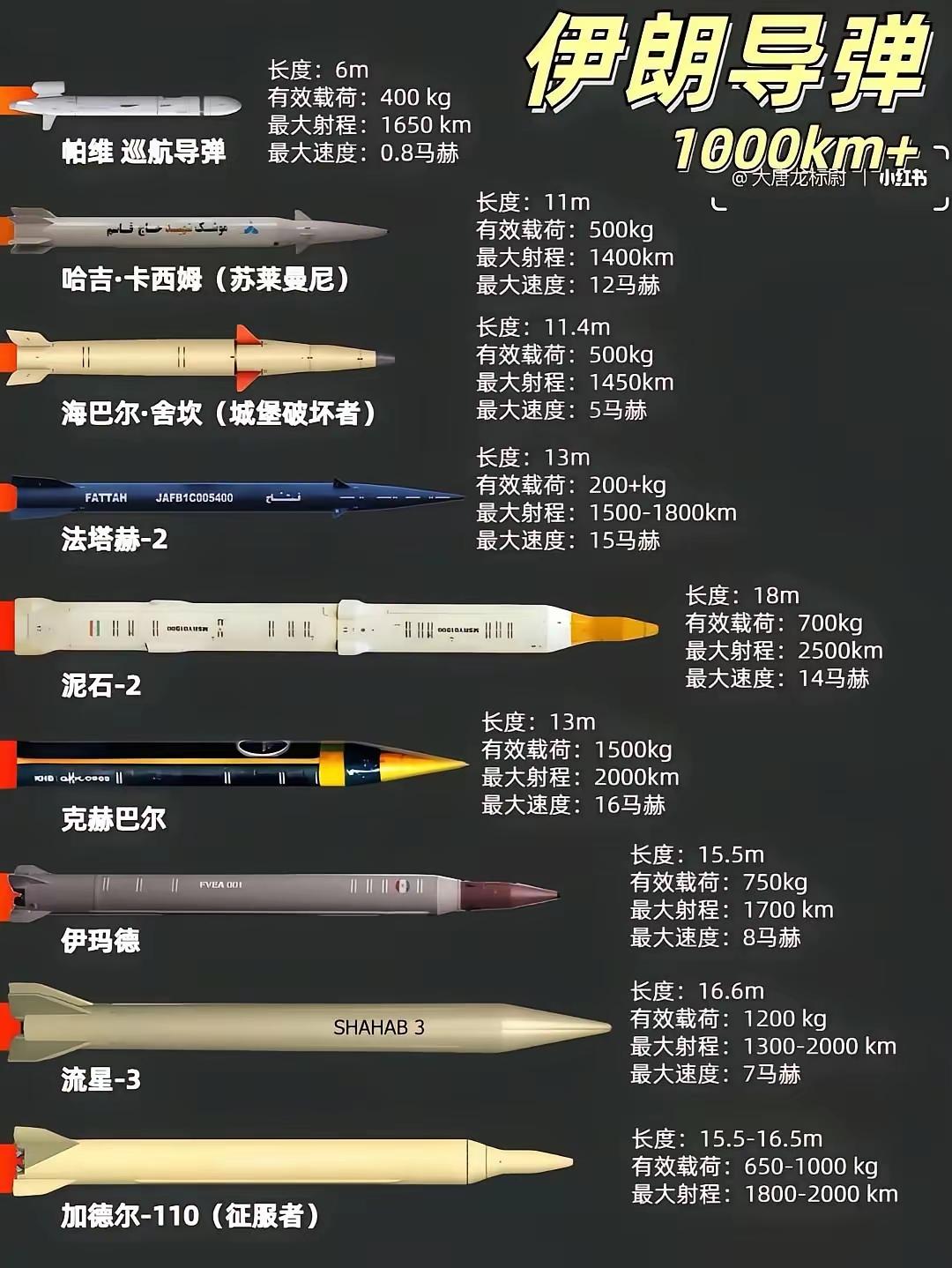 这是伊朗目前拥有的全部导弹型号 伊朗到美国本土直线距离约9700-12000公里,而伊朗导弹目前最大射程才2500公里左右,远够不着美国本土。无法对美国本土飙升任何威胁。 覆盖以色列是完全没有问题。 外媒智库给伊朗算了一笔账。 估算伊朗导弹总库存约2000-3000枚,2025年“十二日战争”消耗约550枚,今年2月报复行动发射了150-180枚,库存还有一千多枚导弹。 美国本土打不到,美国的航母基本都在伊朗导弹射程之外,没有自己的卫星定位系统,伊朗也很难对美国的航母造成威胁。 伊朗的海军空军也无法对以色列和美国构成威胁。 所以认为最优的打法是和以色列来一个鱼死网破,把导弹都往以色列招呼,打残打死以色列,才是最好的战略。