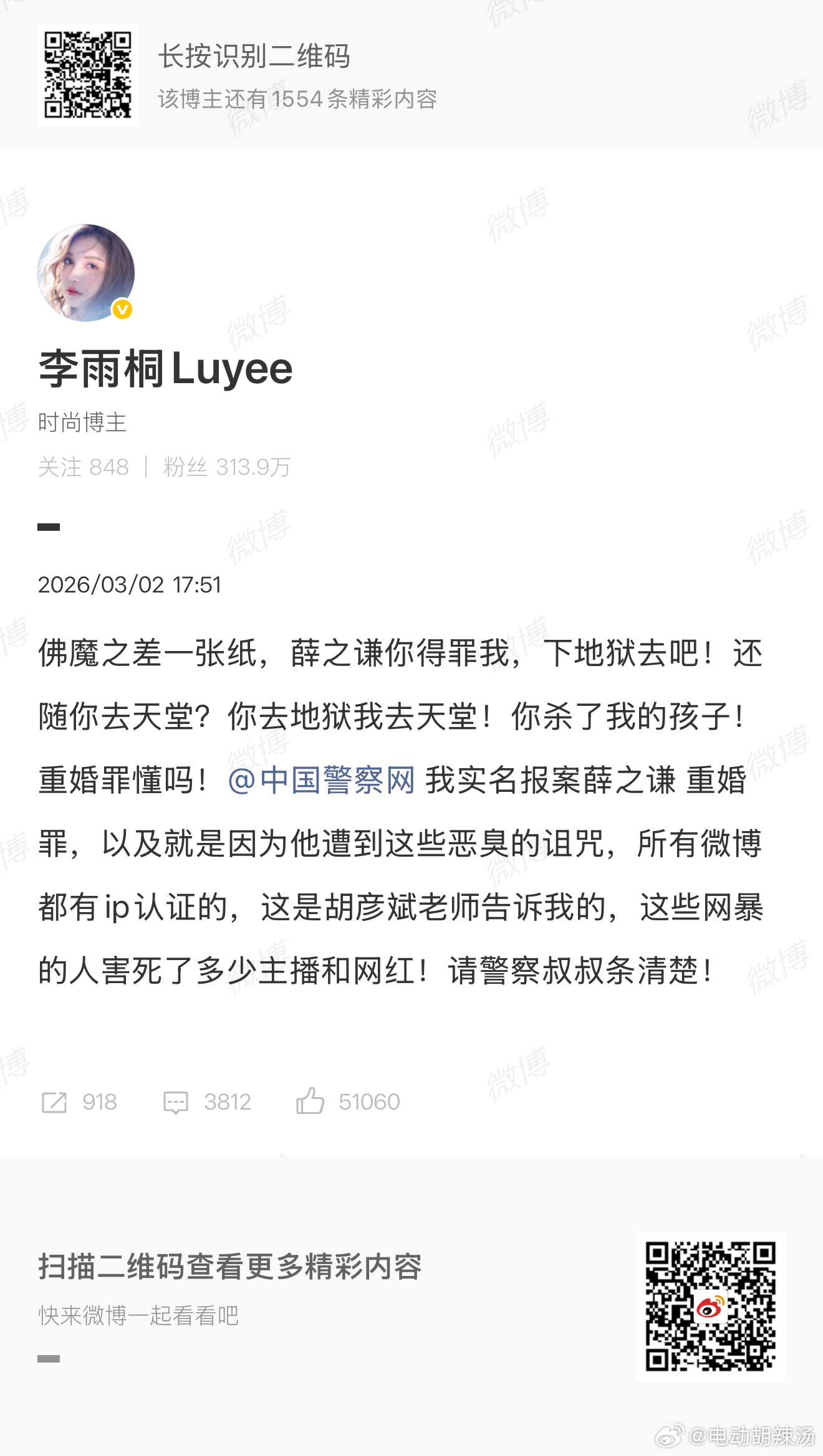 李雨桐实名报案薛之谦重婚罪看了半天,这条博文的文字逻辑可谓十分混乱…