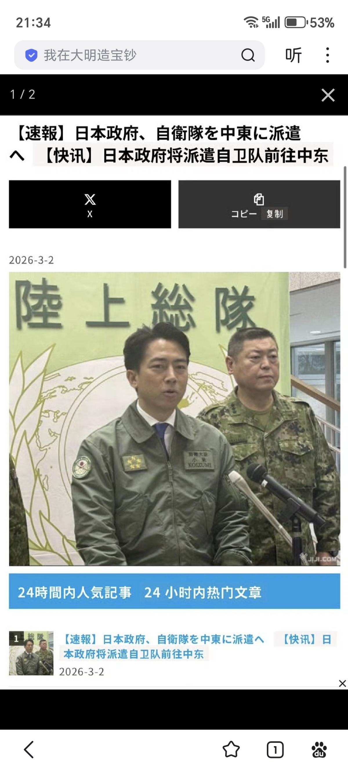 日本政府将派遣自卫队前往中东,名义是“协助日本公民撤离”。