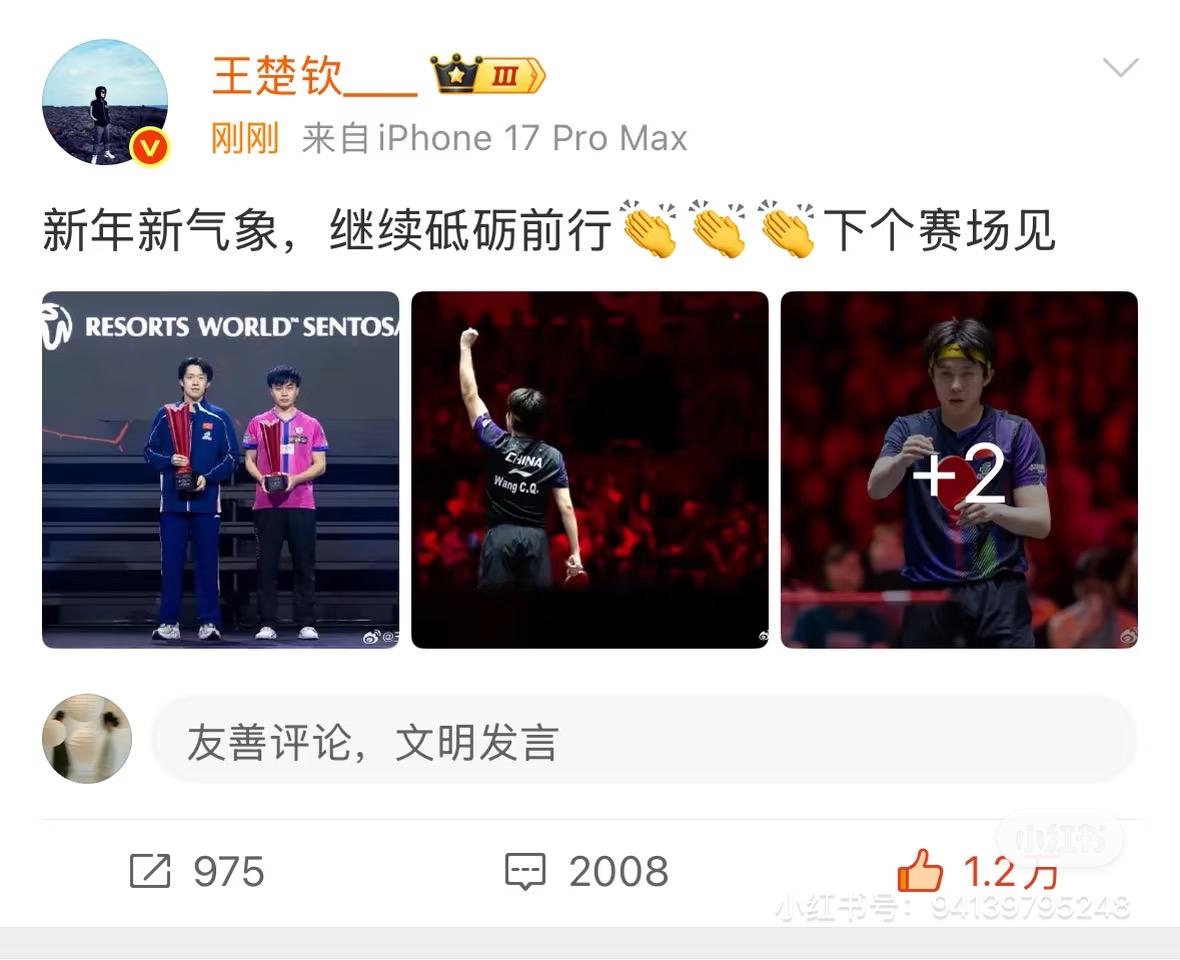 王楚钦很开心,耶耶放得开,阳光灿烂,依旧自信,做事认真,比赛完美收官! 发微博了 ,不点开看真的发现不了,不过有他的道理,新的开始! 头哥大拇指点赞,不一样的感觉,就是要冲冲冲! 新的一年历程继续加油,无所畏惧,大胆表现出来就好了,不藏着掖着,我们都看好!