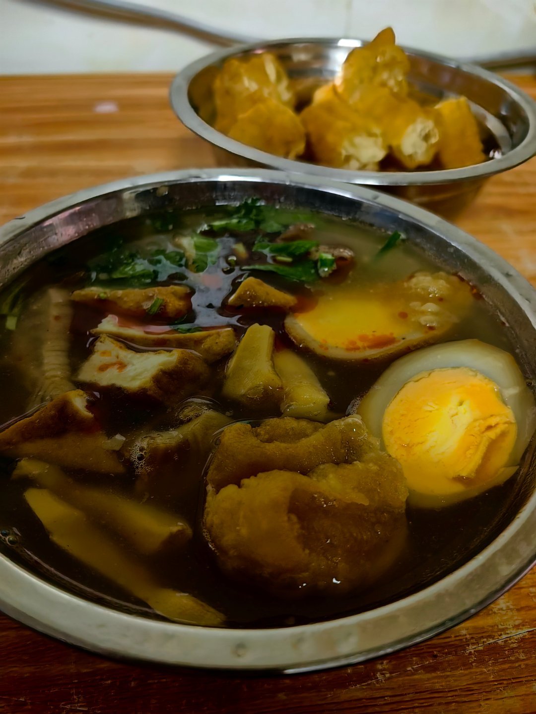 *在路上*锅边糊...跟米线糊差不多,都是+各种料,我的是猪皮,大肠,二层肉,豆腐,笋。不同的是汤底米线换成白色的东东,一样好吃...一路过来,终于可以在7点吃上早点,潮汕,东山岛一般开门要8点后了...福建漳州古城... 漳州·(原)台湾路锅边糊