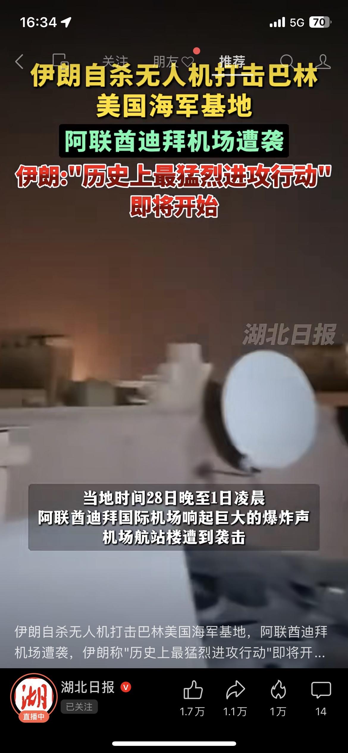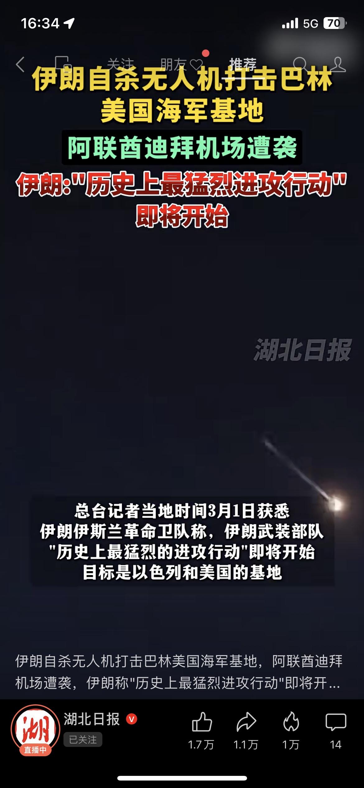 伊朗自杀无人机打击巴林美国海军基地、迪拜机场遭袭 我刚刷到伊朗最新行动,直接把美伊冲突的火药桶又往火里推了一把。当地时间2月28日夜间至3月1日凌晨,伊朗使用导弹和自杀无人机对美国海军位于巴林的基地实施打击;阿联酋迪拜国际机场响起爆炸声,机场航站楼遭到袭击。伊朗还宣称“历史上最猛烈的进攻行动”即将开始,目标是以色列和美国的基地。说白了,现在局势已经不是“会不会升级”,而是“升级到什么程度”。咱普通人别再抱着侥幸心理,记住三句话:黄金别追高,银行都在风控,别当接盘侠;股票基金别乱割,看霍尔木兹海峡航运是否畅通再决定;想博弈原油、黄金短线的,要信早信、小仓试水,别all in。你手里有黄金或股票吗?现在是拿着还是动了?评论区说下,我挨个回复。 美伊冲突 伊朗袭击 巴林美军基地 迪拜机场遭袭 理财 市场有风险,投资需谨慎;本文不构成任何投资建议。