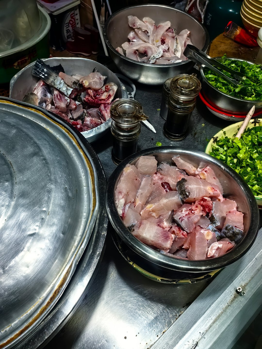 *在路上*本来想去吃鲁面,看见这家本地人多,就这吧...鱼粥,草鱼,豆腐,隔夜的米粥,一小盘调料汁~酱油小葱蒜末~潮汕没看见有北方大蒜的。早上就吃大块的鱼,鲜,给力...为了吃早餐,5000步了,哈...福建漳州古城... 漳州·女人街