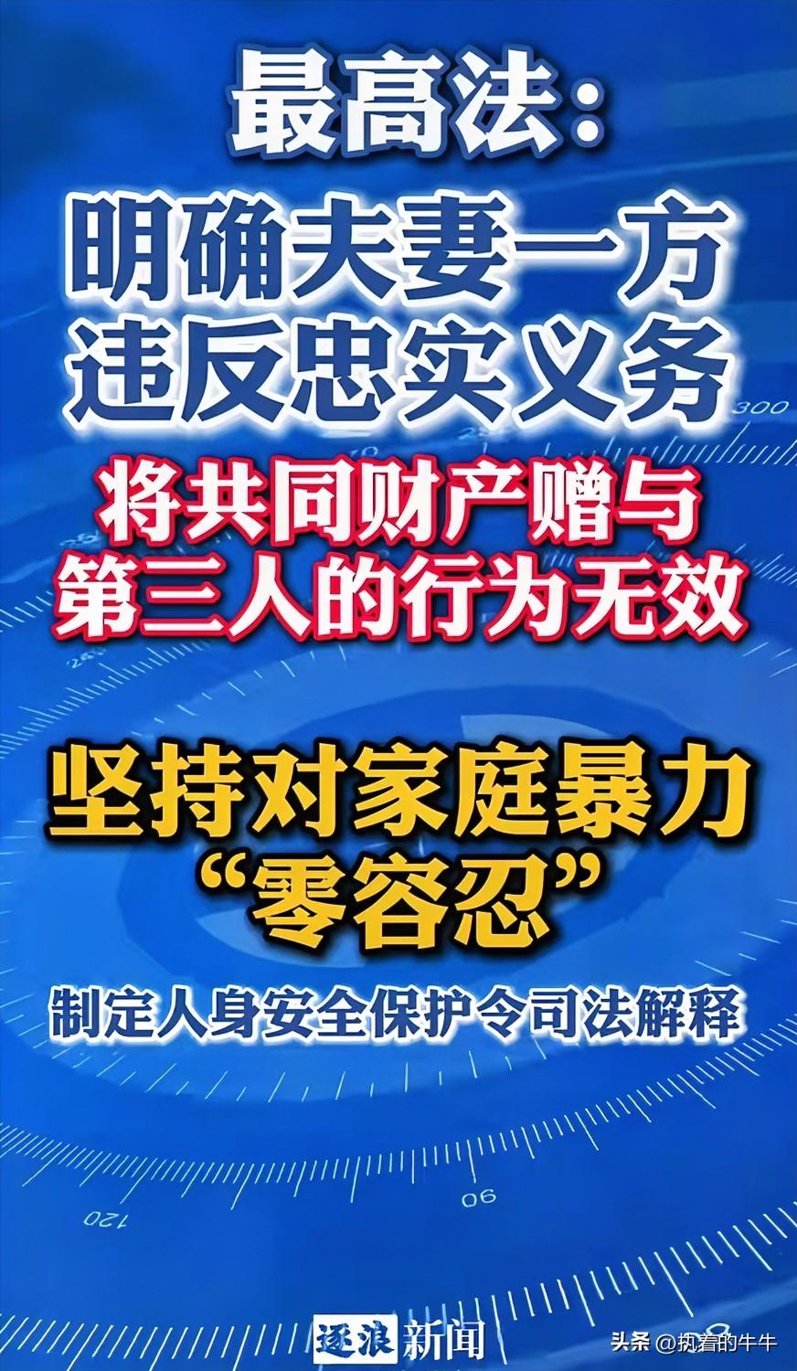 一觉醒来, 小三都懵了, 不是不能当小三了,而是最高法有规定了。 最高法明确夫妻一方违反忠实义务,将共同财产赠与第三人的行为无效。 这意味着什么?你在外面胡搞可以,但是别想着从人家手里捞钱了,否则原配一纸法律文约就可以把不属于你的全夺回来,那你“辛辛苦苦”的青春费可是打了水漂。 不过我也有很多疑惑,这小三万一生了孩子,这私生子的抚养费什么的,是不是受法律保护? 要说这法律判决力度还是有点轻、应该取消私生子继承权,维护原配合法权益,直接将婚内出轨立法吧! 大家说是不是?